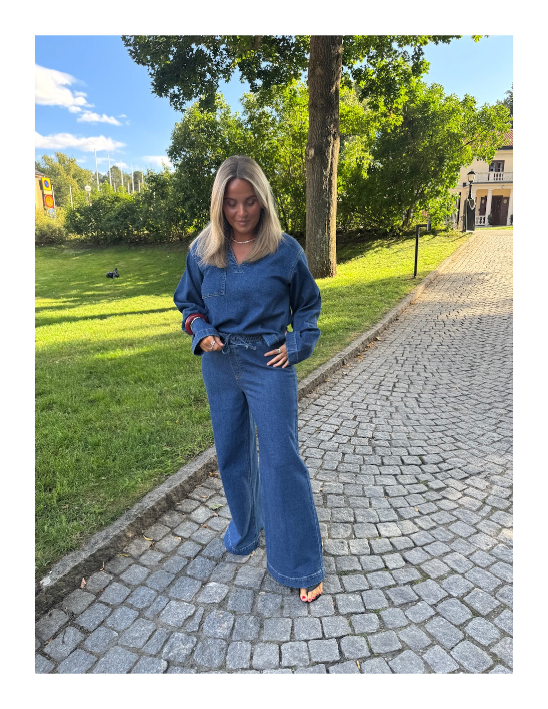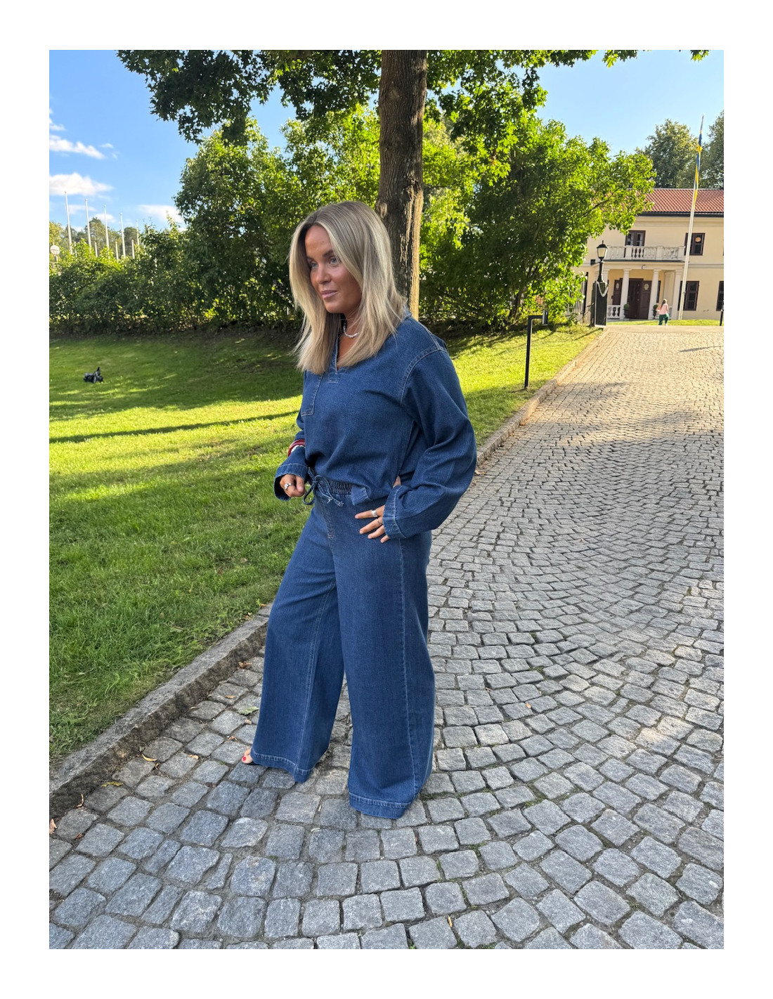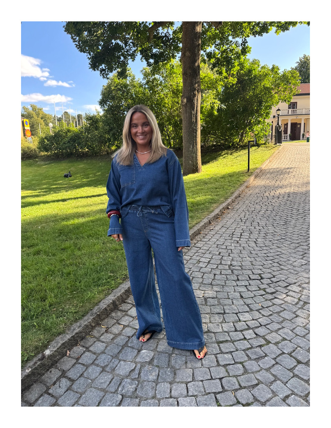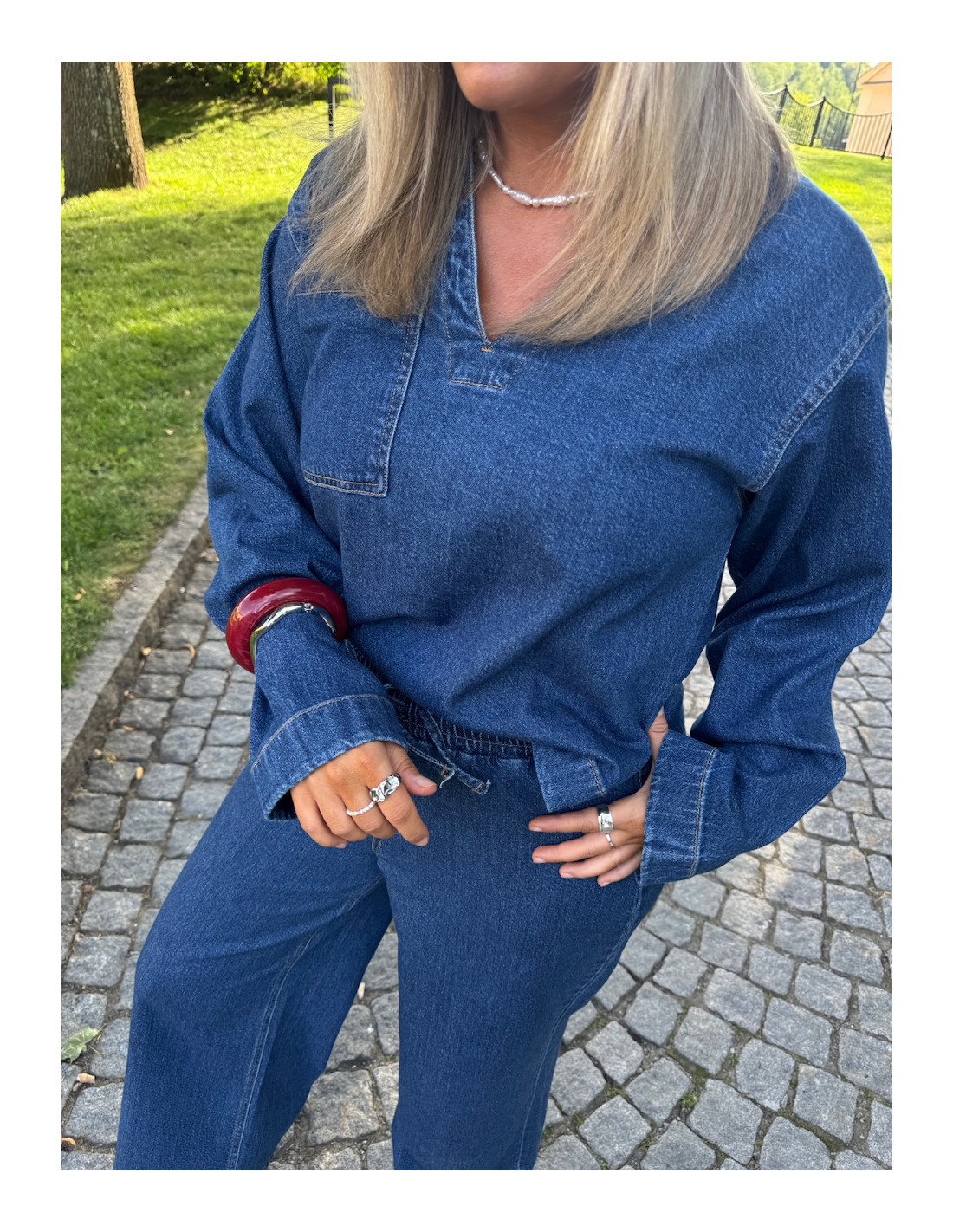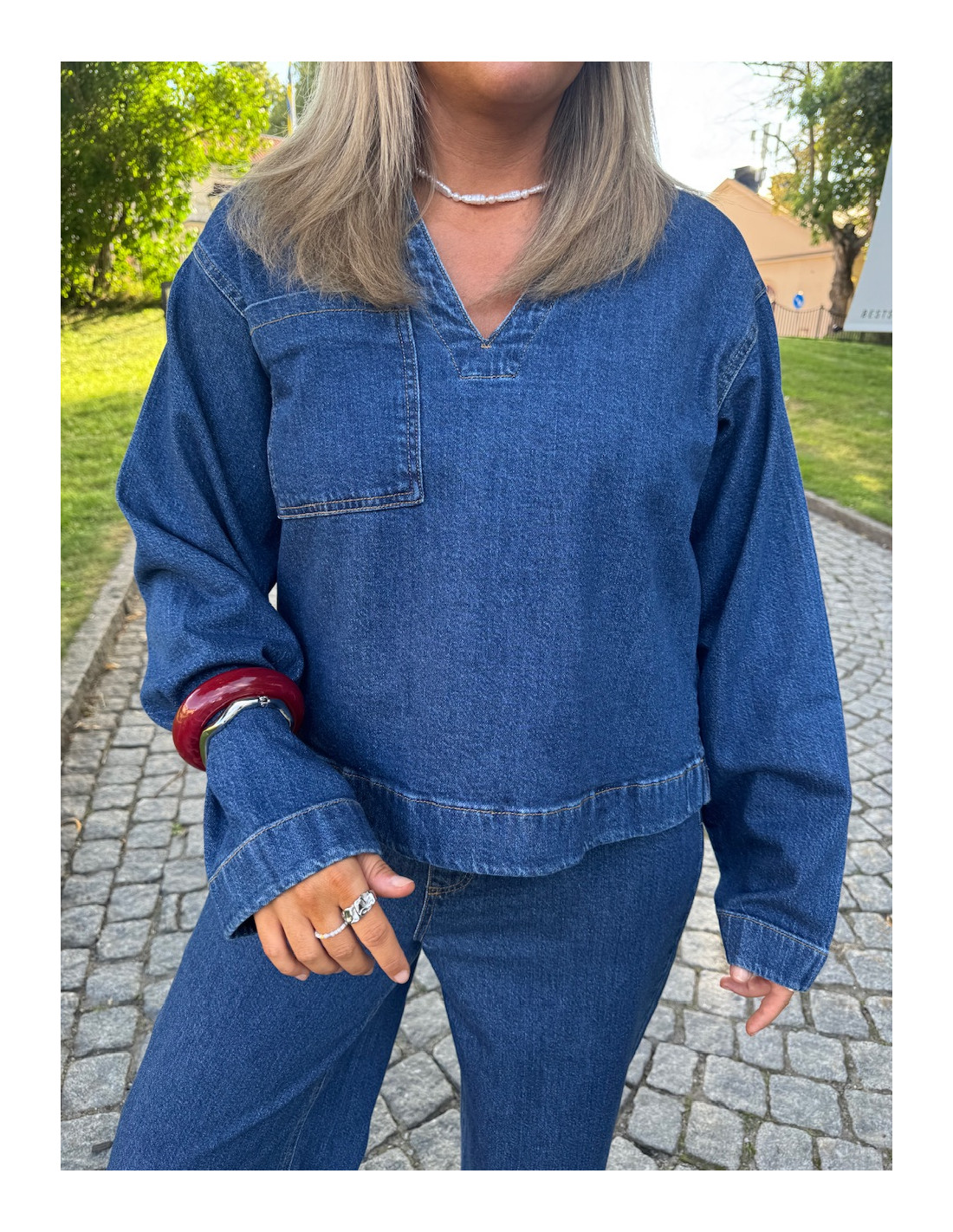 Så fin jeansblus med v-neck som man kan bära dag in och dag ut. Matcha med jeansen 'PCSILKE MW PULL UP DENIM PANTS'.