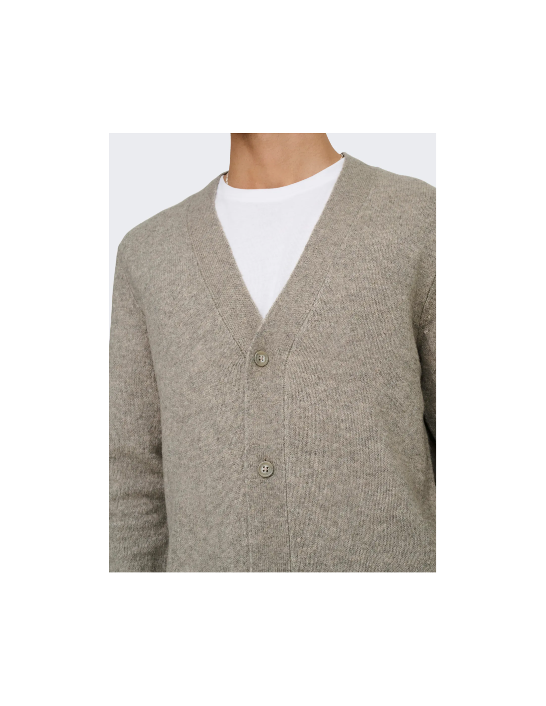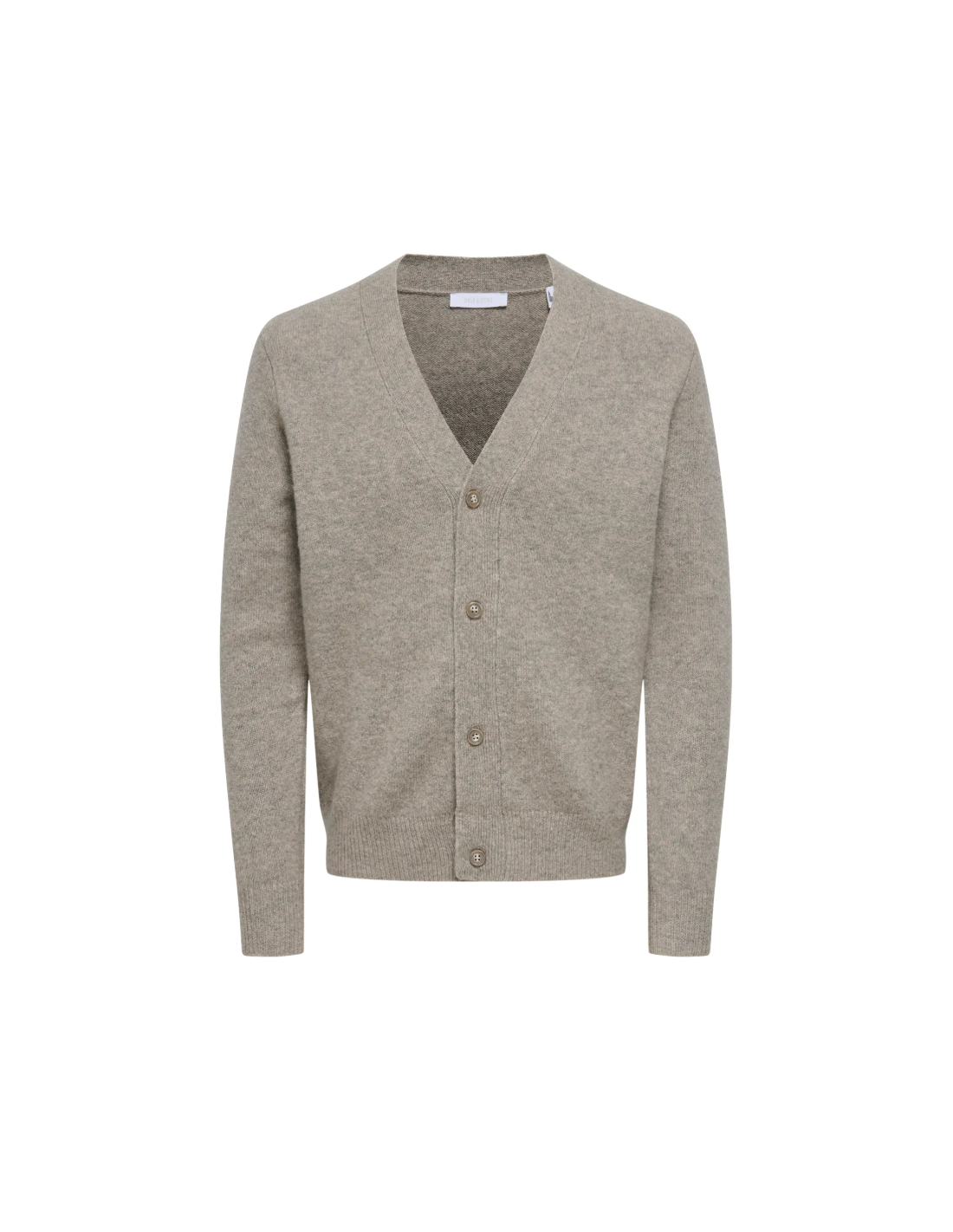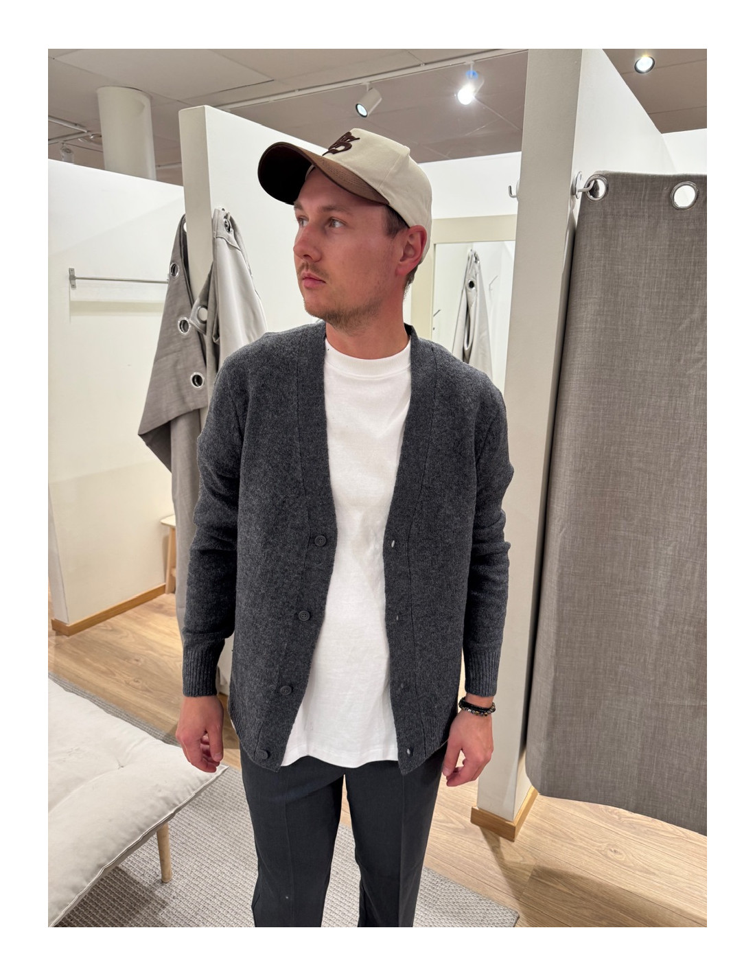 Grym cardigan med knappar och v-ringning i tunnare stickat material.