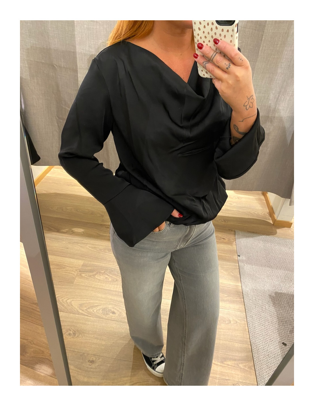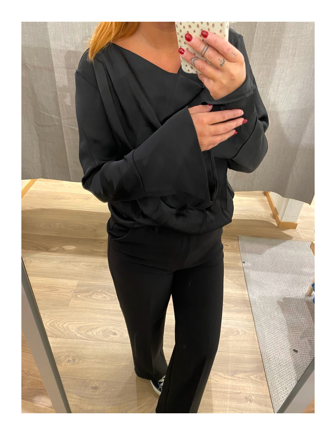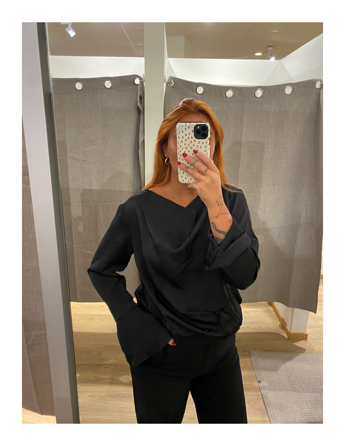 Festlig topp i glansigt tyg.