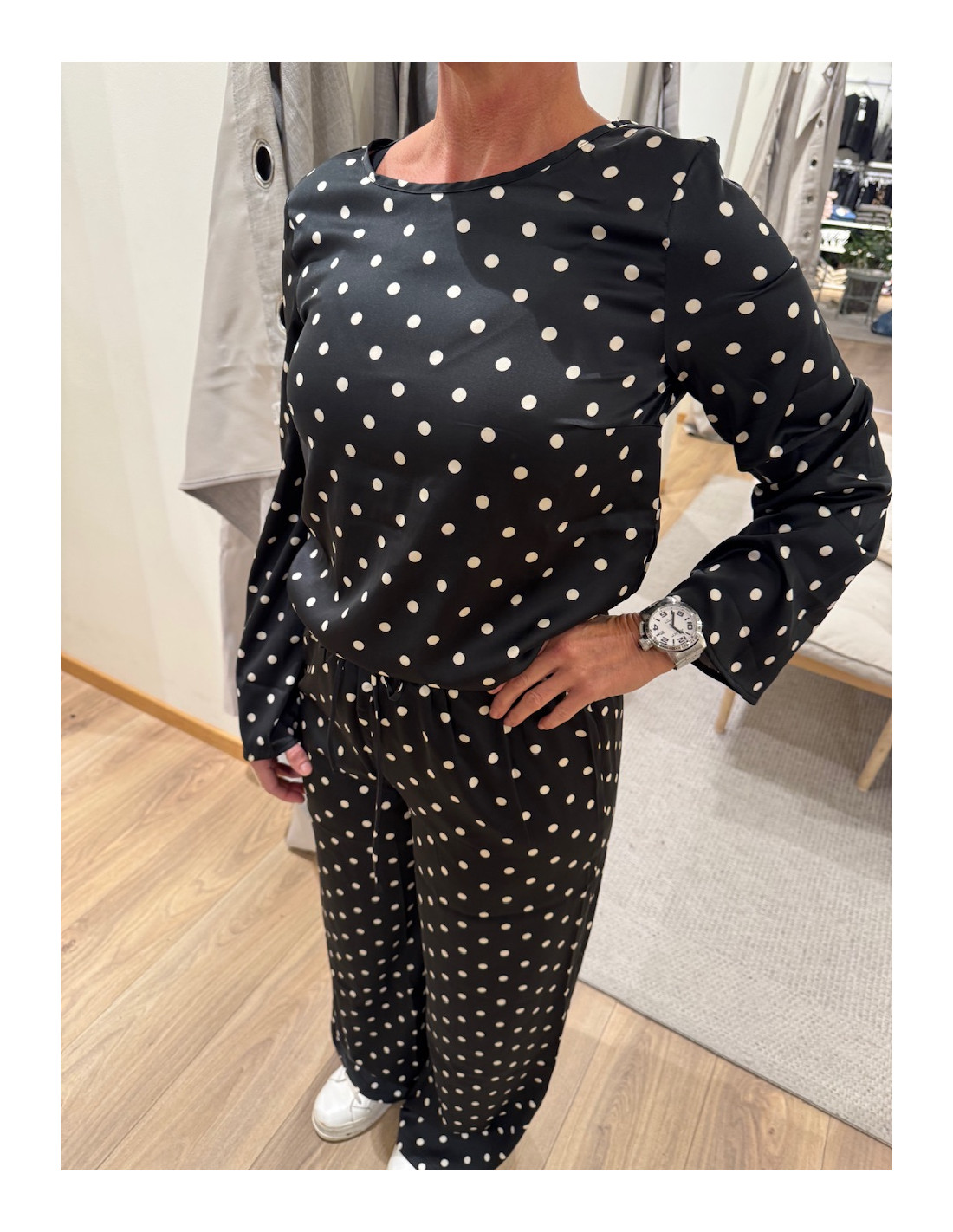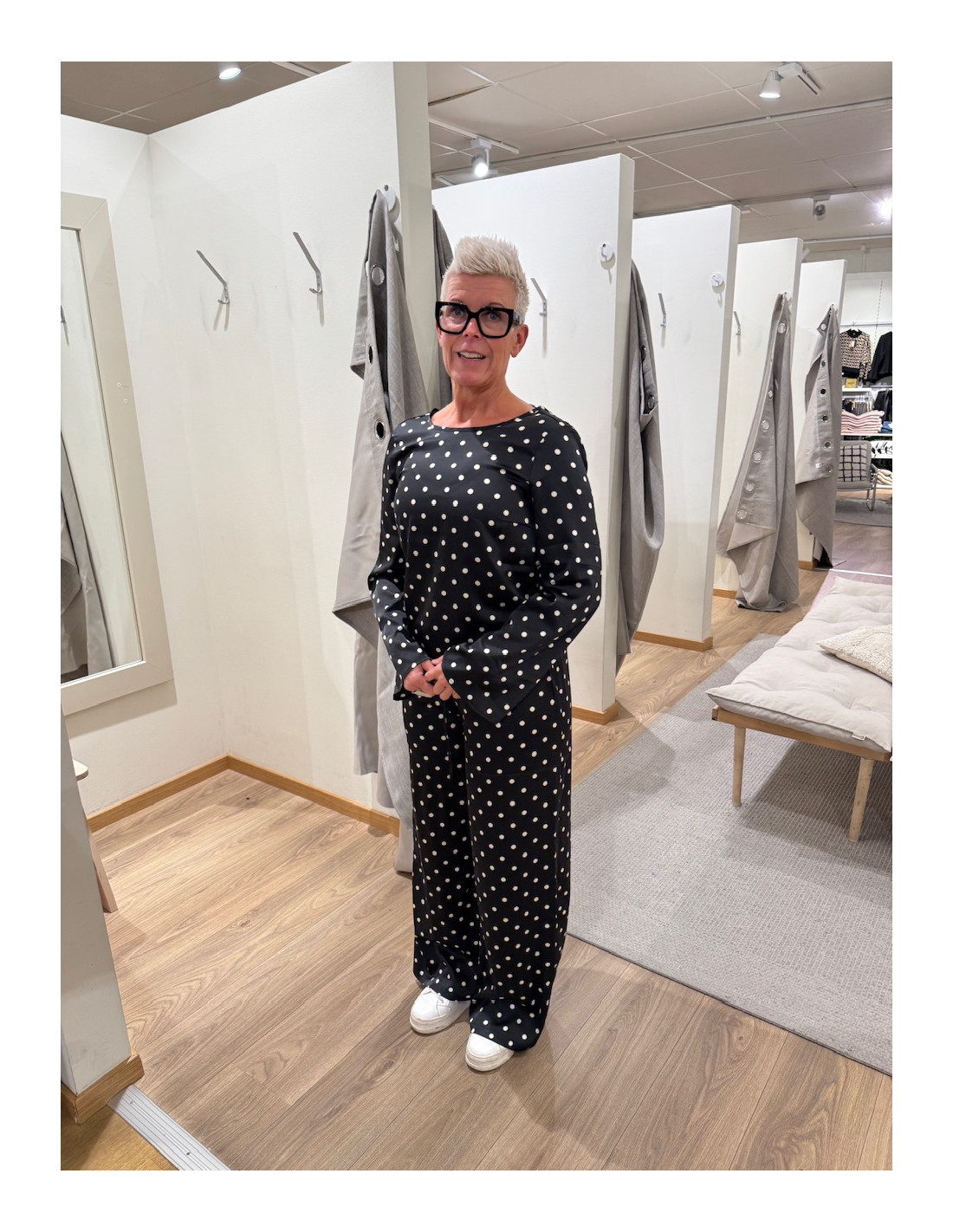 Prickiga byxor i vid modell.