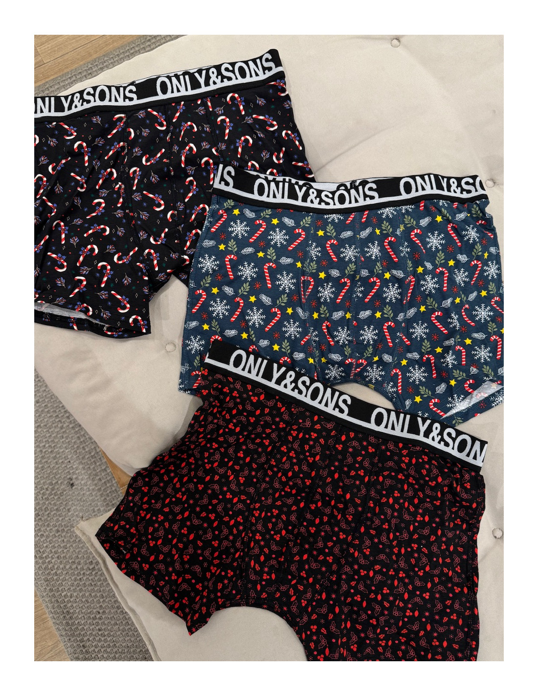 Kalsonger i 3-pack från Only & Sons med juligt motiv.