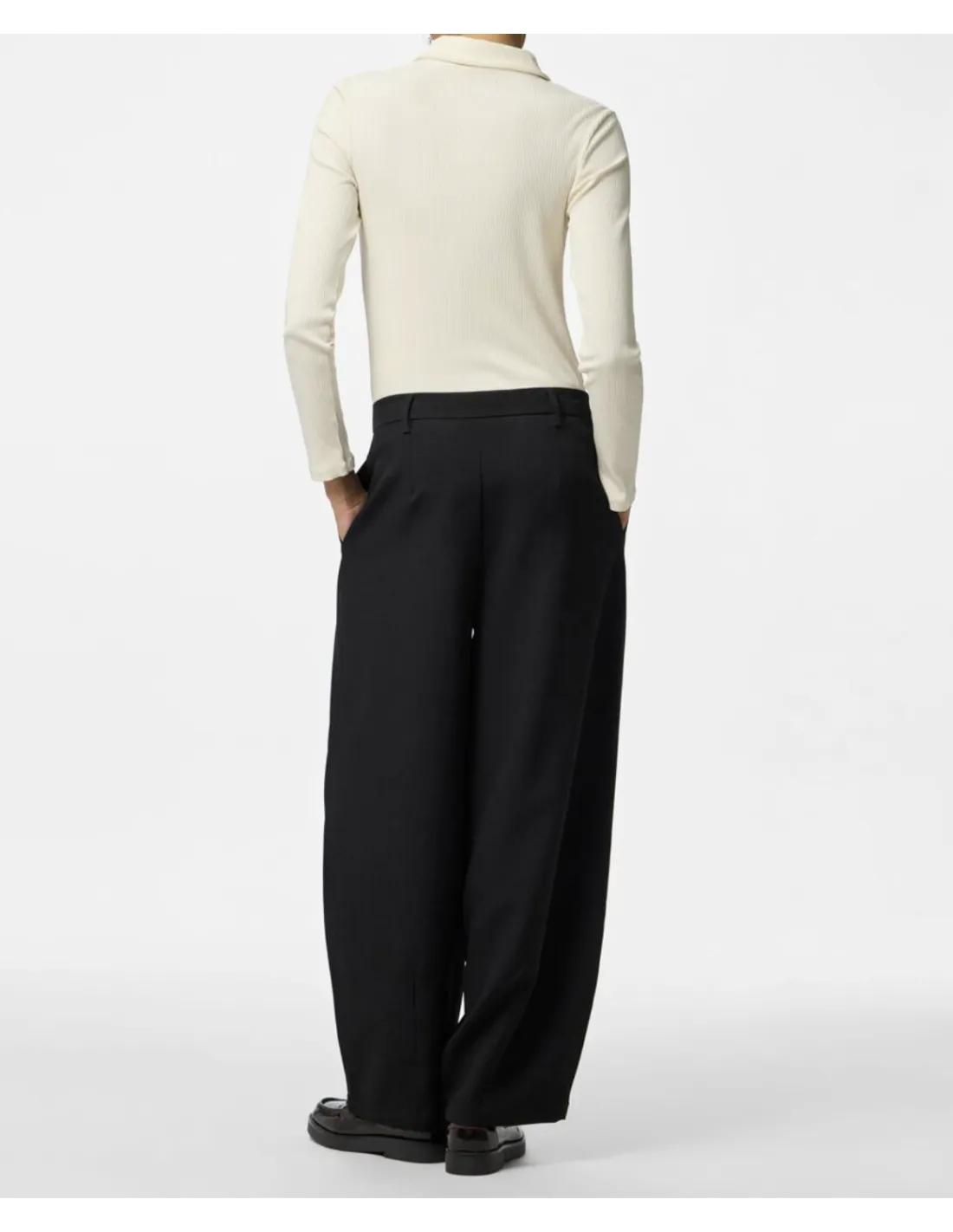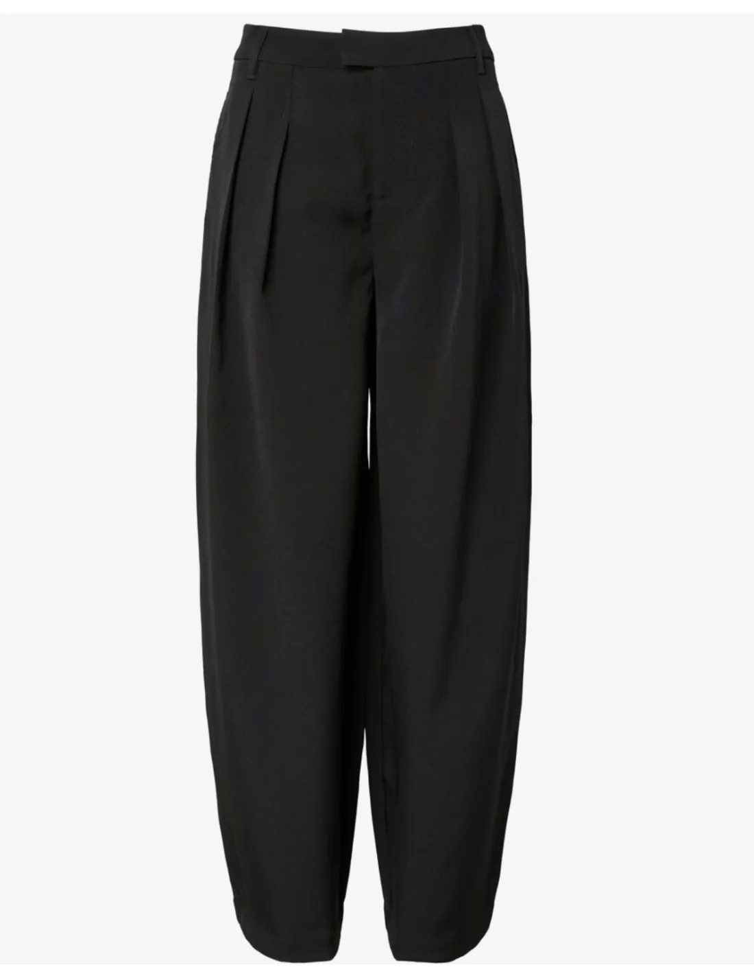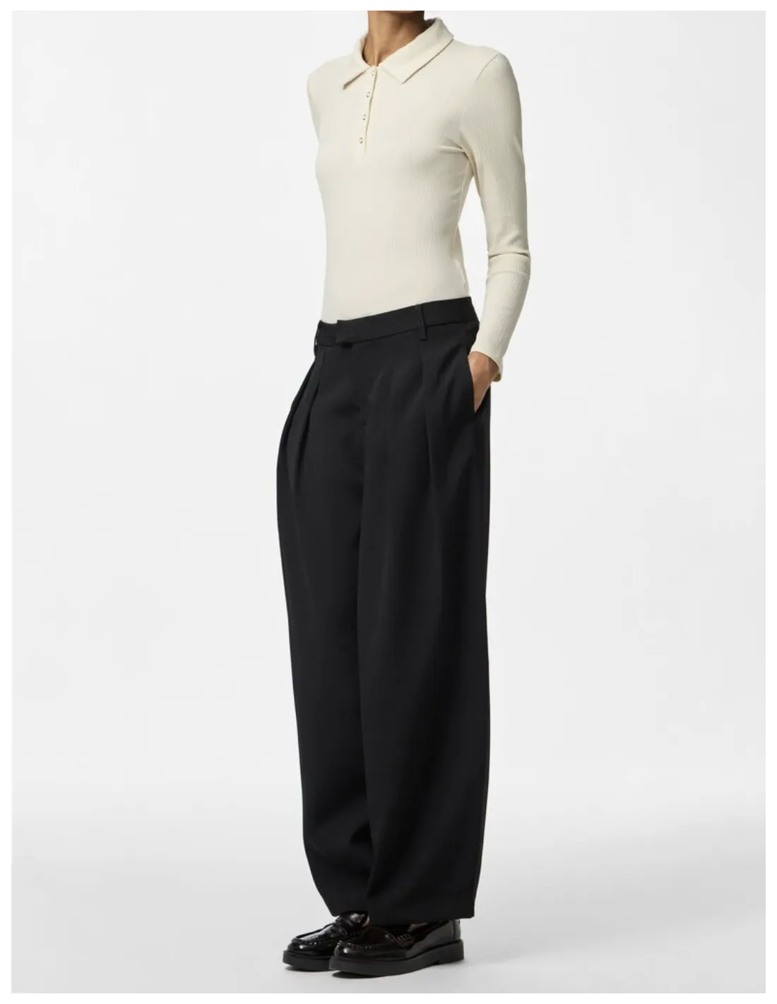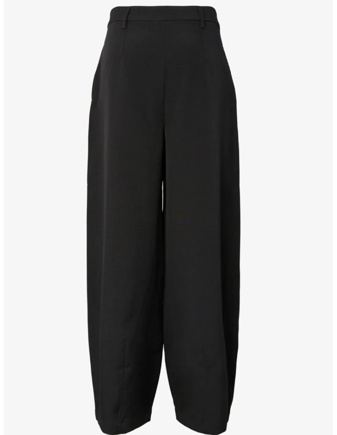 Vid/oversized passform som smalnar av nedtill vid foten.