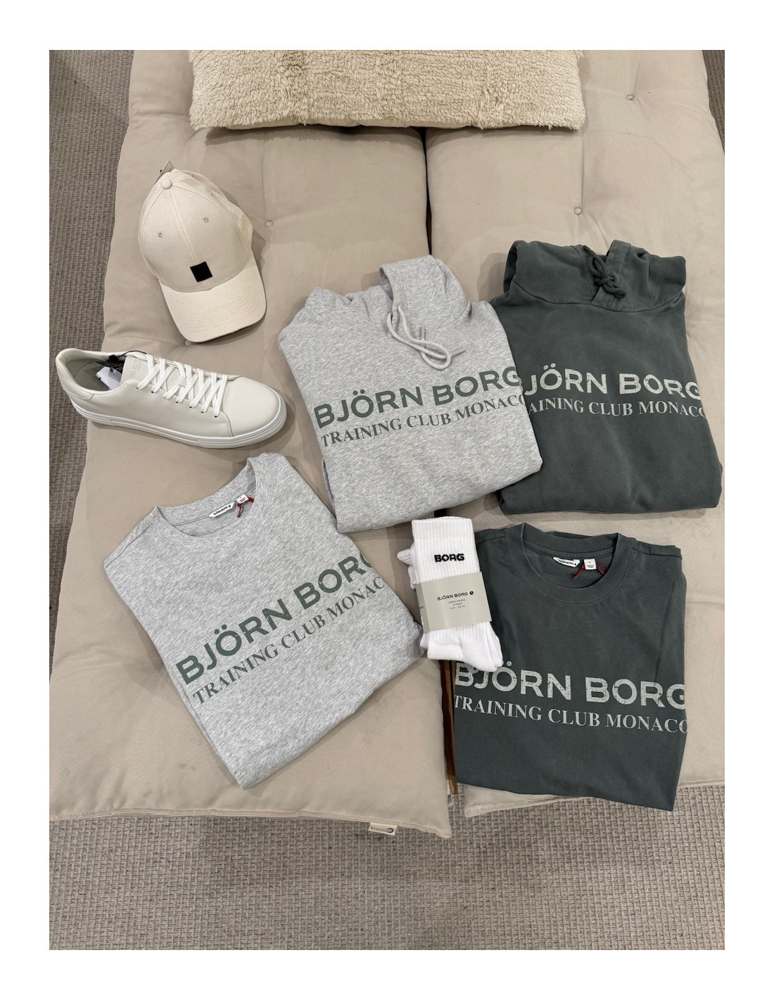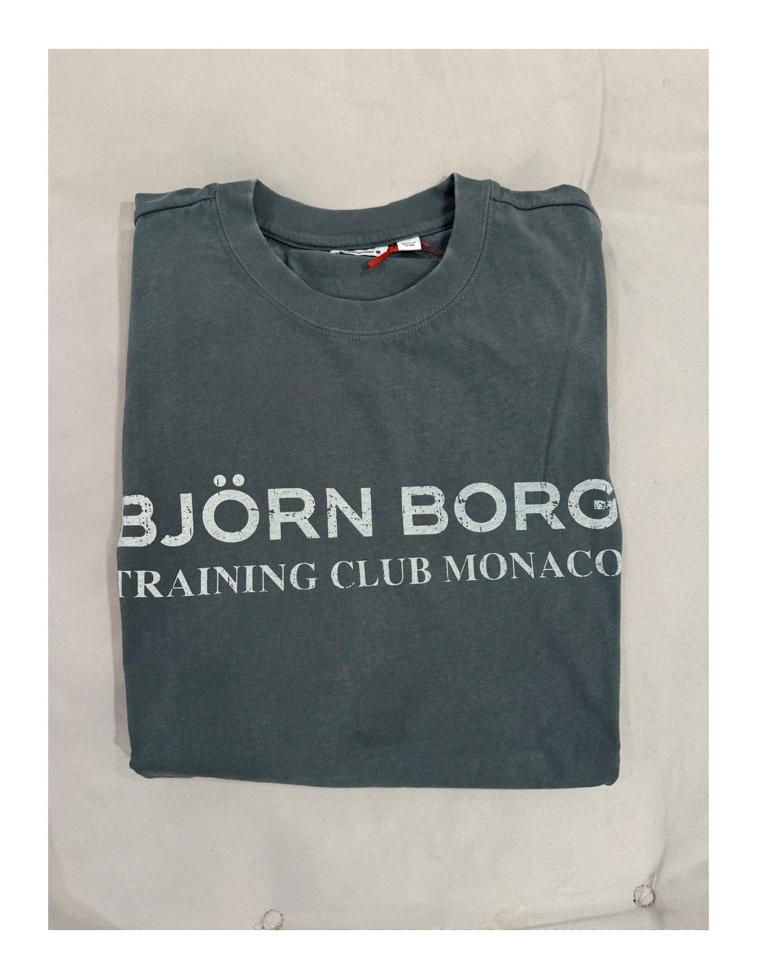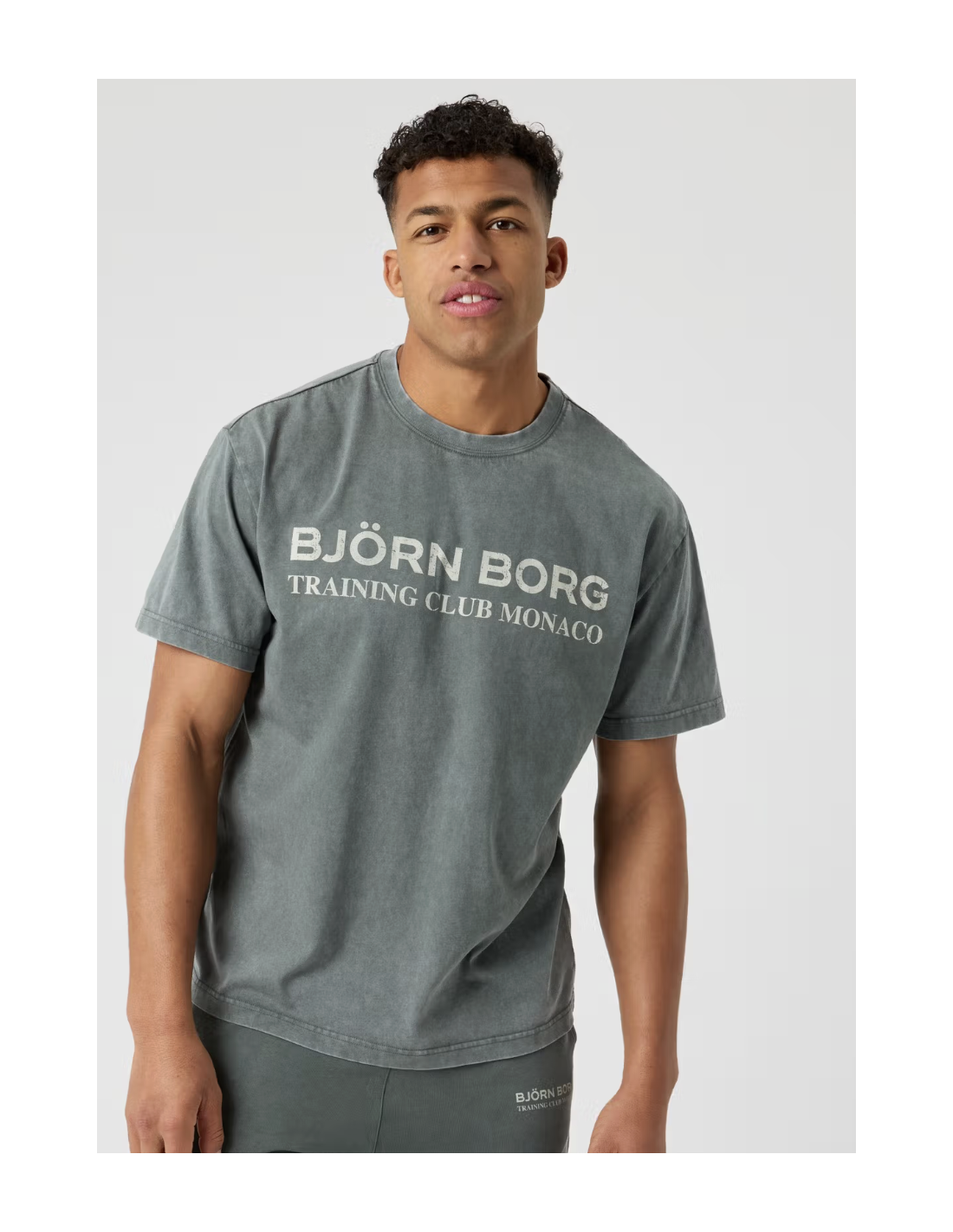 En tidlös herr t-shirt med den ikoniska Björn Borg-grafiken på bröstet och tennisbollstryck i nacken. Tillverkad av 100% bomull med regular fit för vardagskomfort och stil.