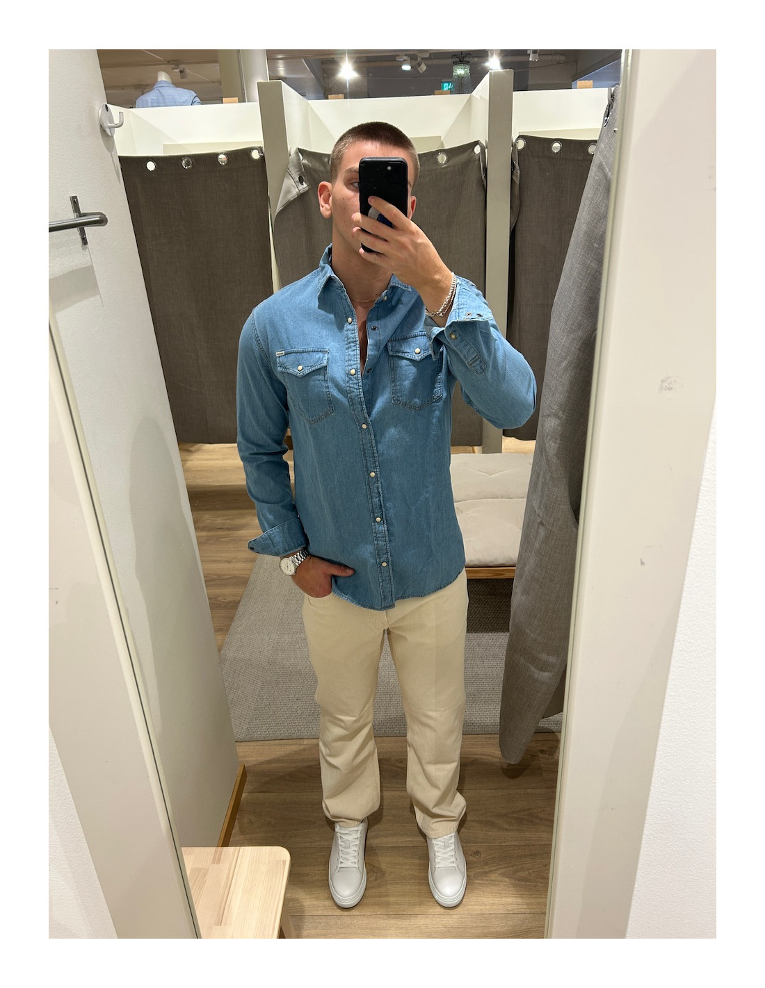 Bomullskvalitet, som ger en riktig denim look.