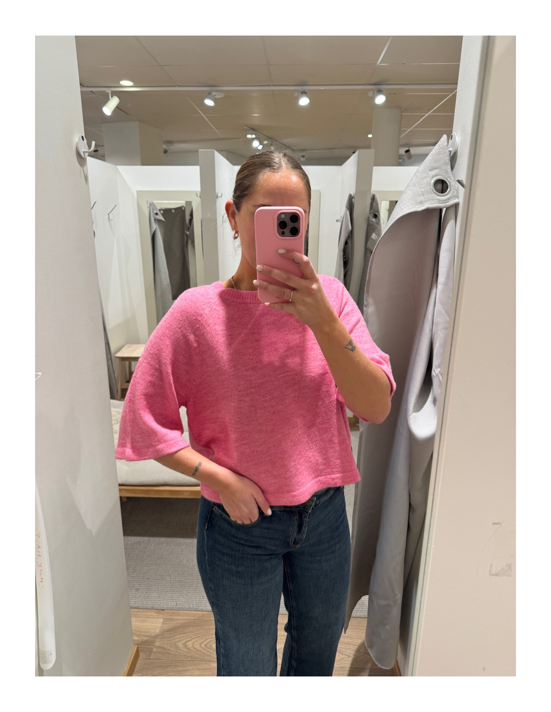 Stickad tröja med 3/4 ärmar.