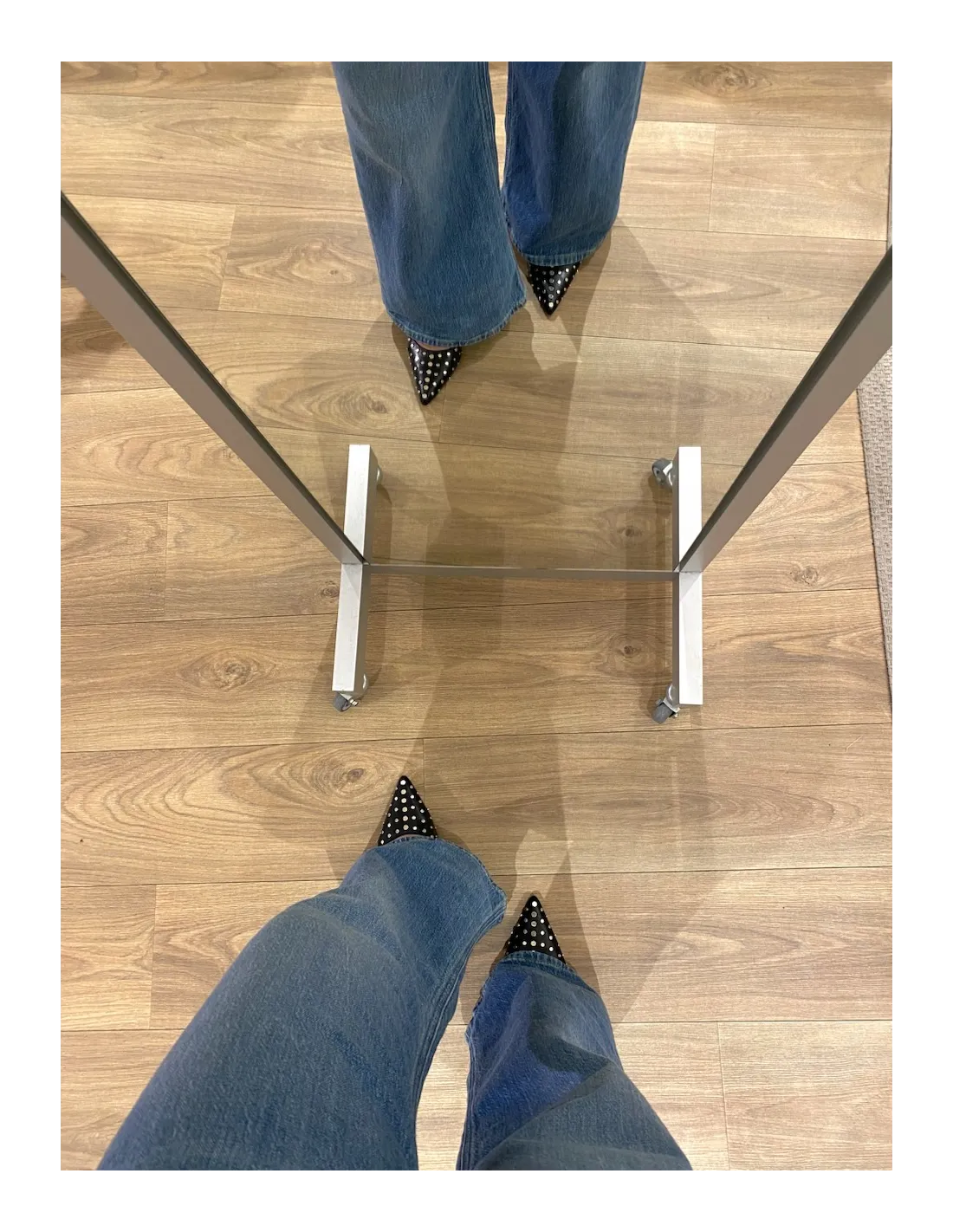 Spetsig tå och med platta nitar.