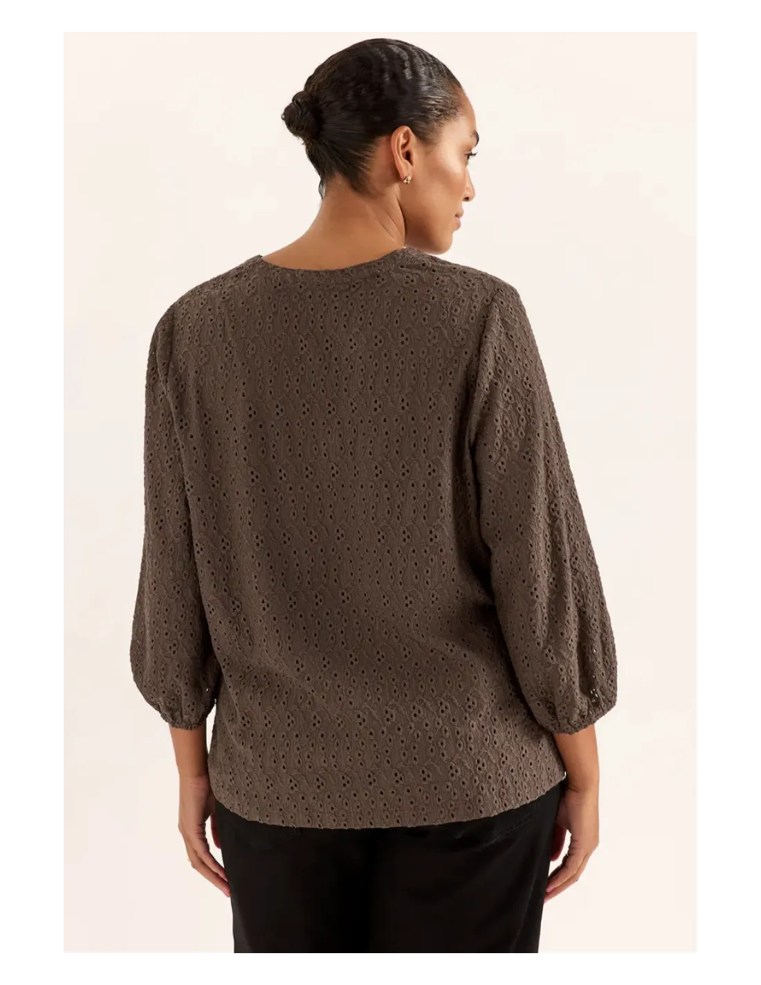 • Strukturmönstrad, stretchig topp i broderie anglaise.