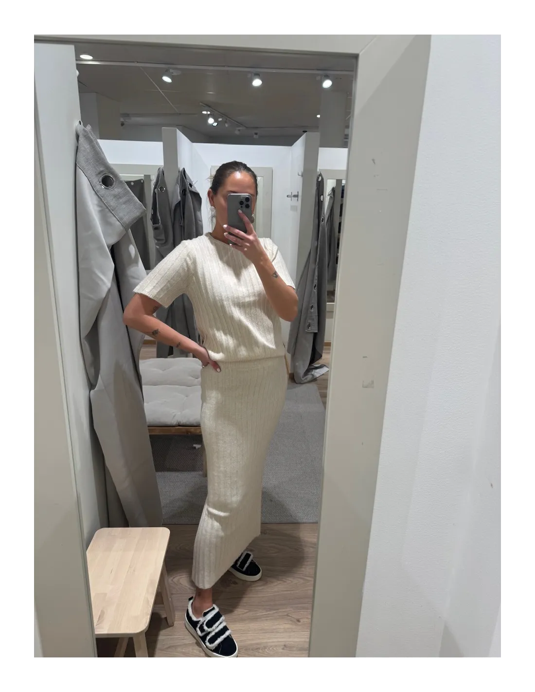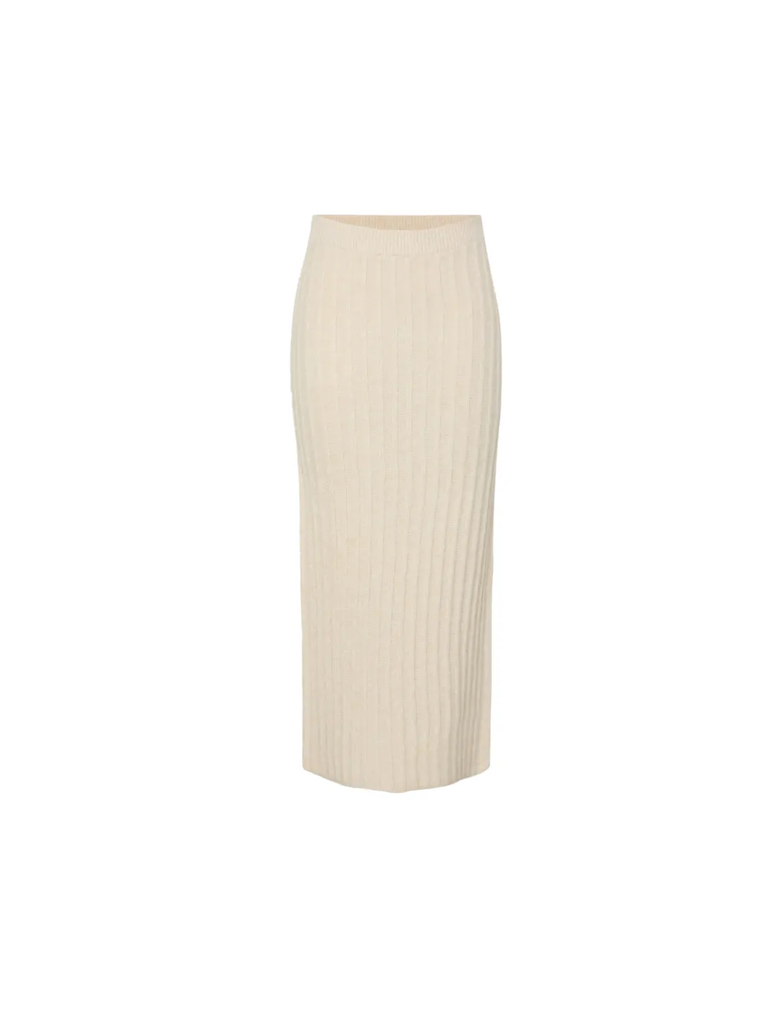Stickad långkjol med slits på ena sidan. Ribbad kvalitet.