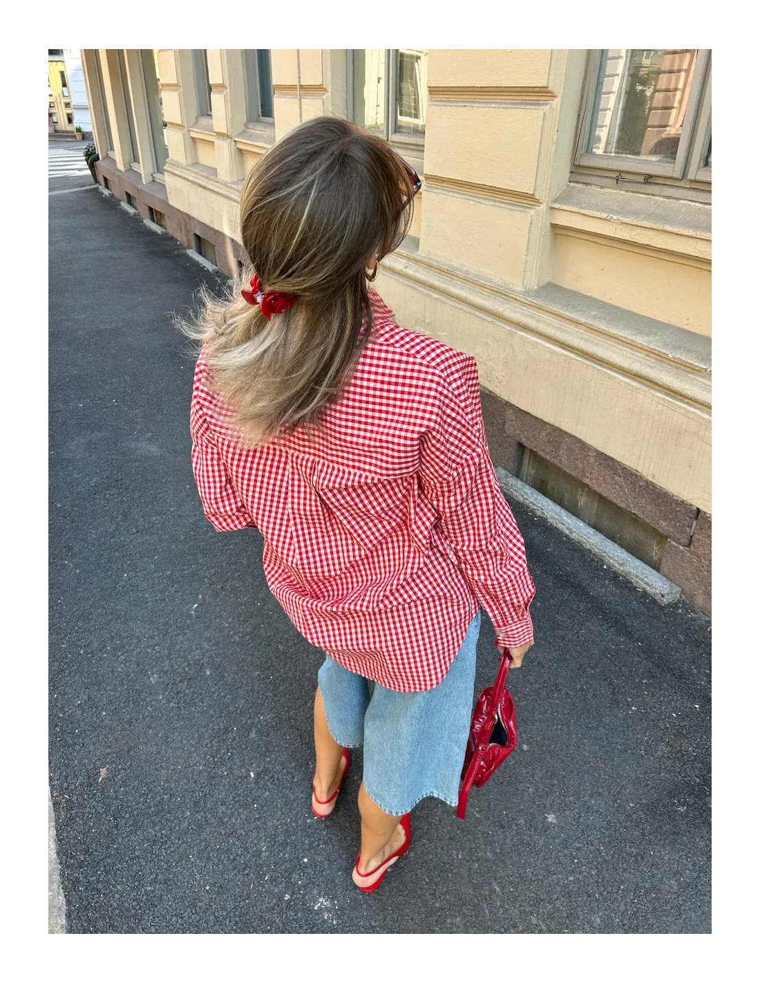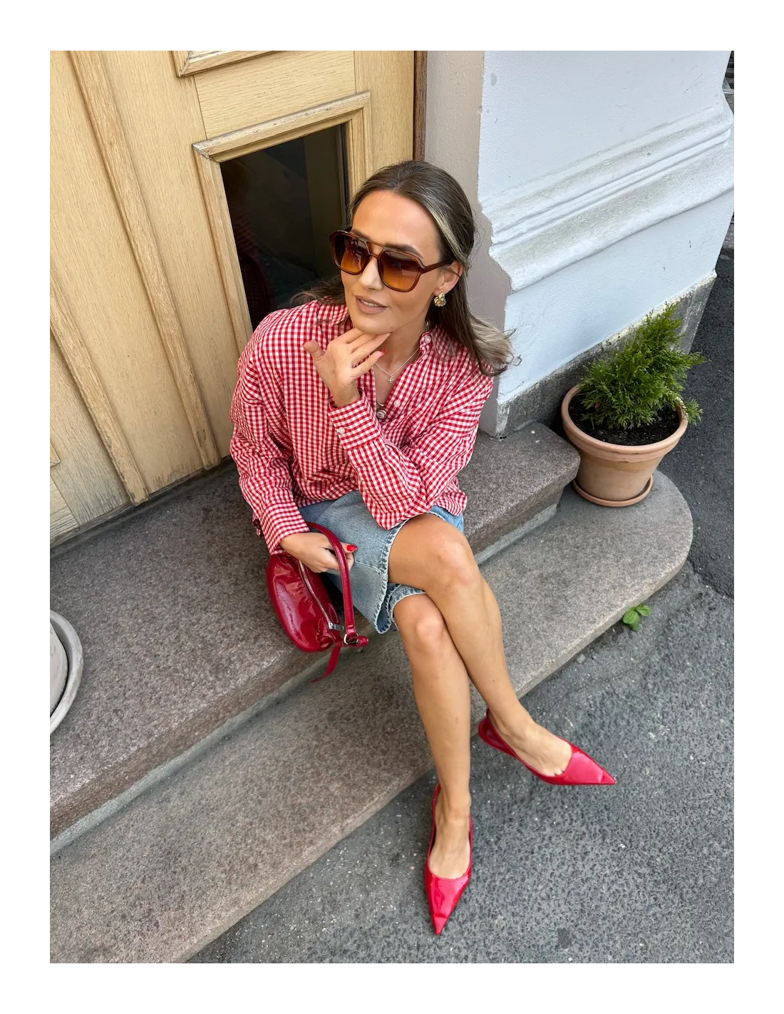 Rödvit rutig skjorta i poplin.