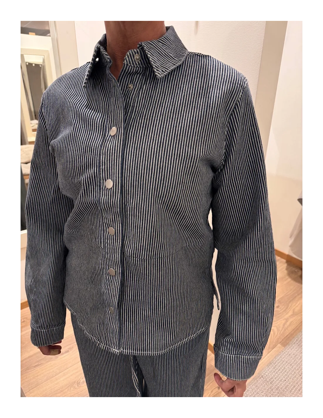 Skjorta med krage och knappar fram.