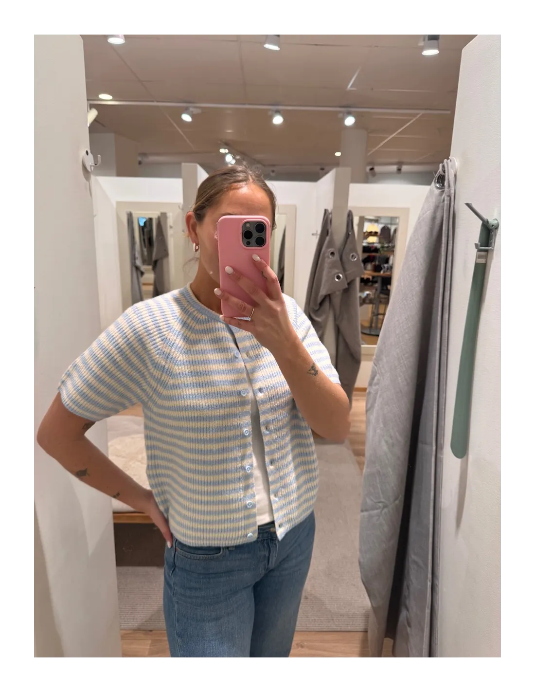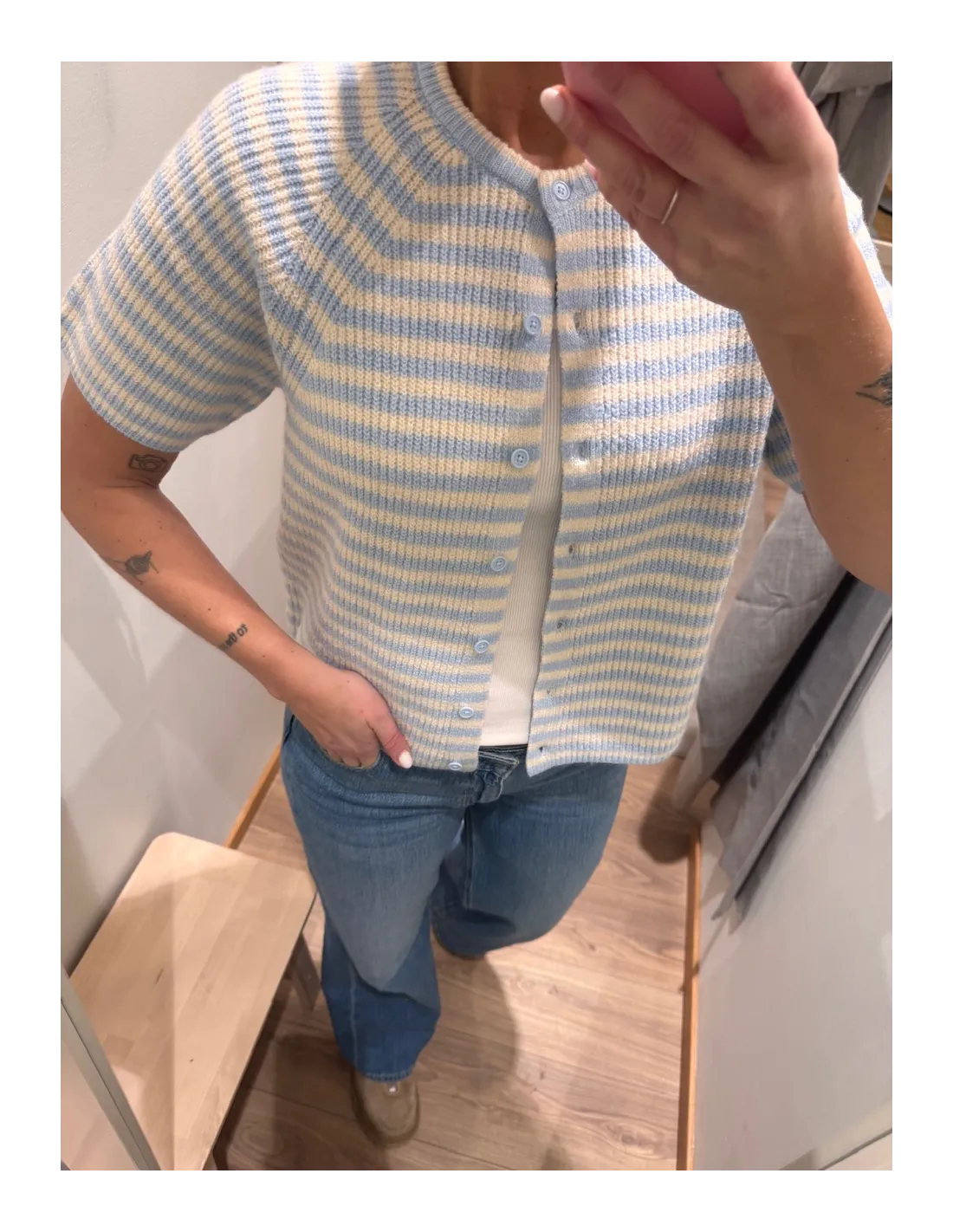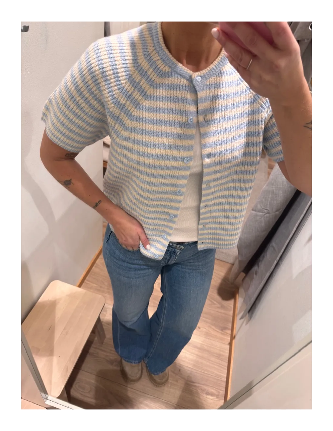 PCMALOU SS O-NECK STRIPE CARDIGAN