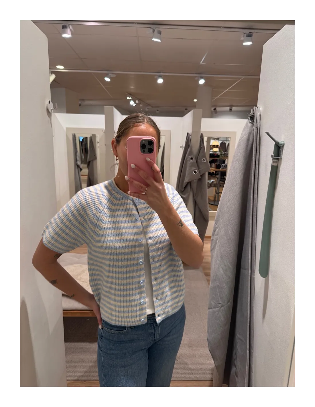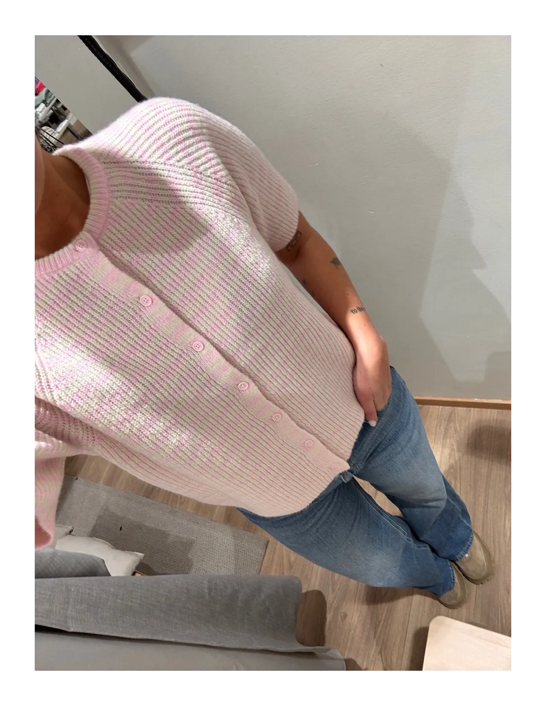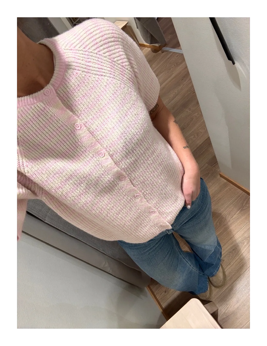 PCMALOU SS O-NECK STRIPE CARDIGAN