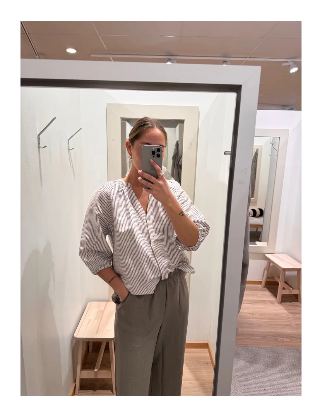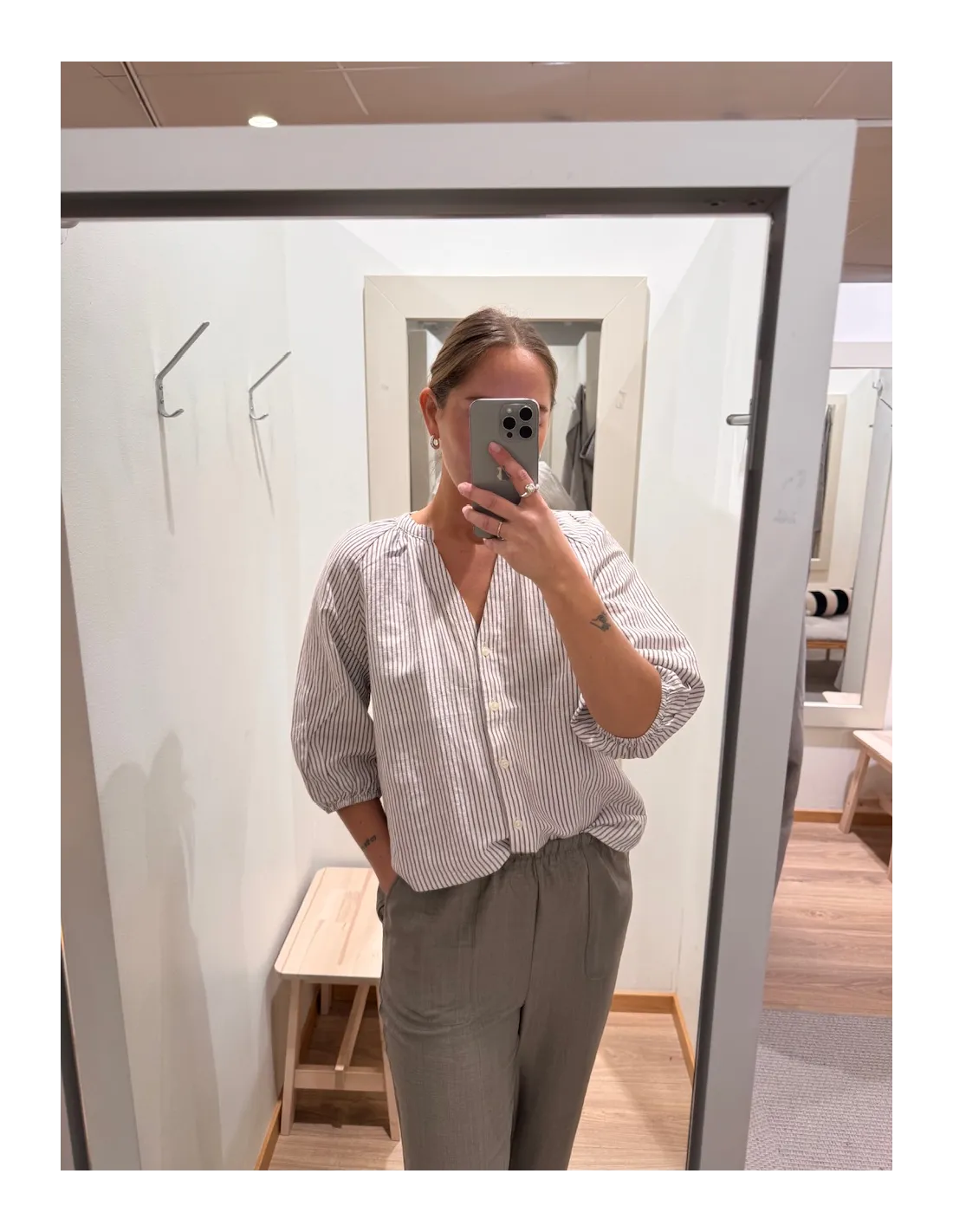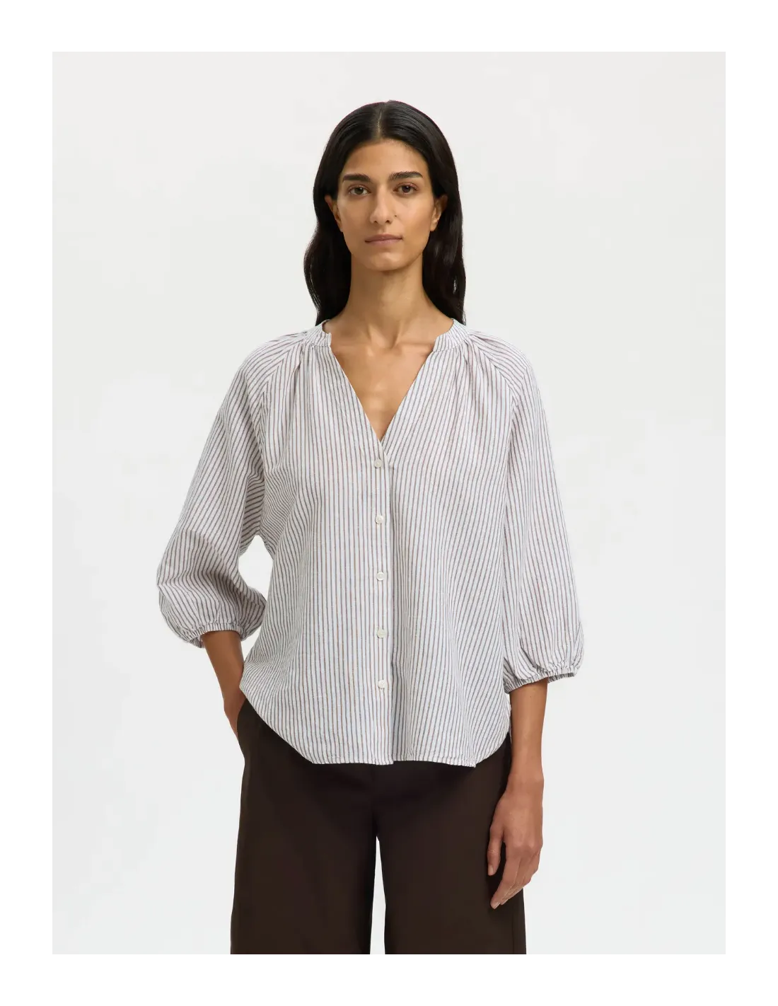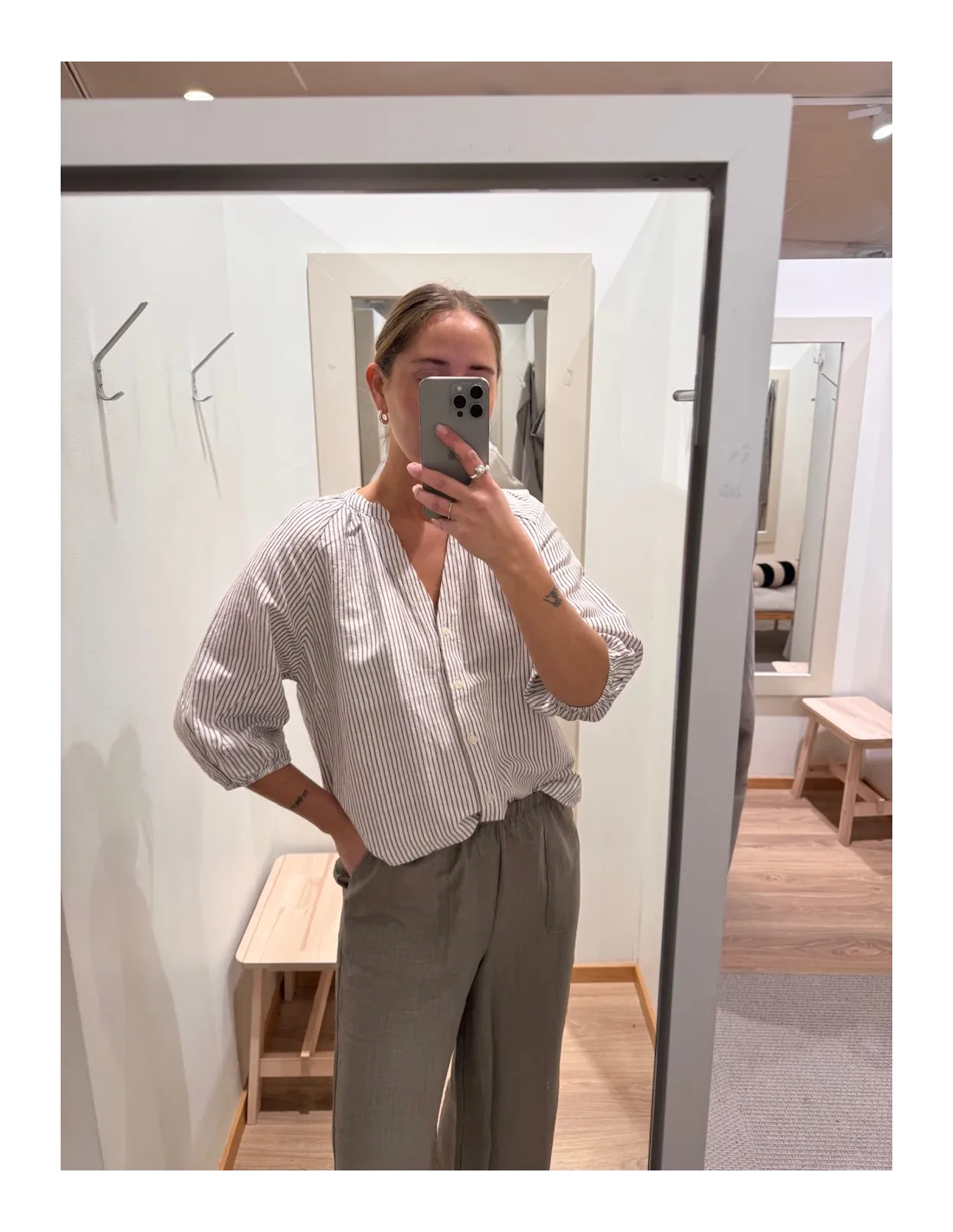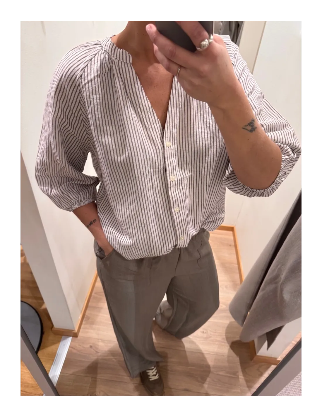 Blus i linne med 3/4 ärm, v-neck och relaxed fit.