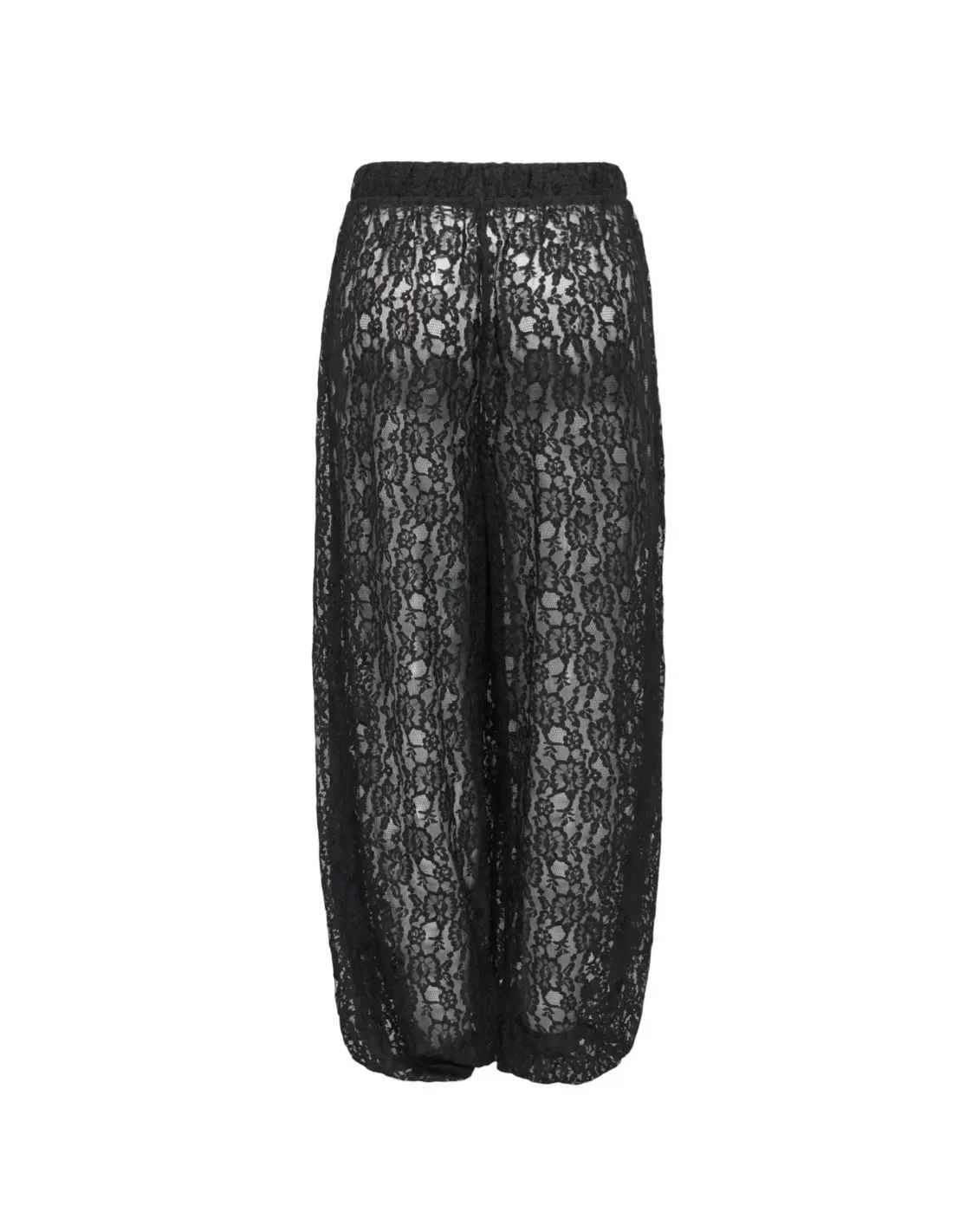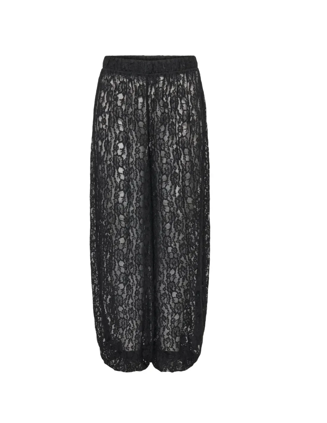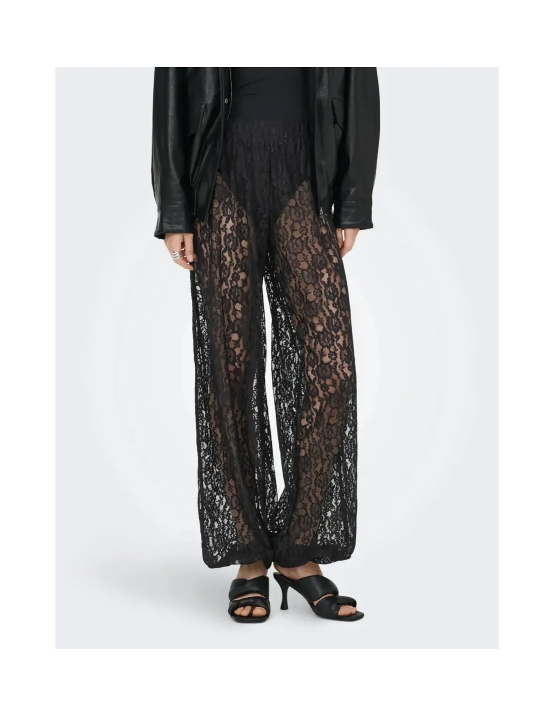 Svarta spetsbyxor från Only med ett blommigt mönster. Byxorna har en balloon-fit passform och går ner till anklarna.