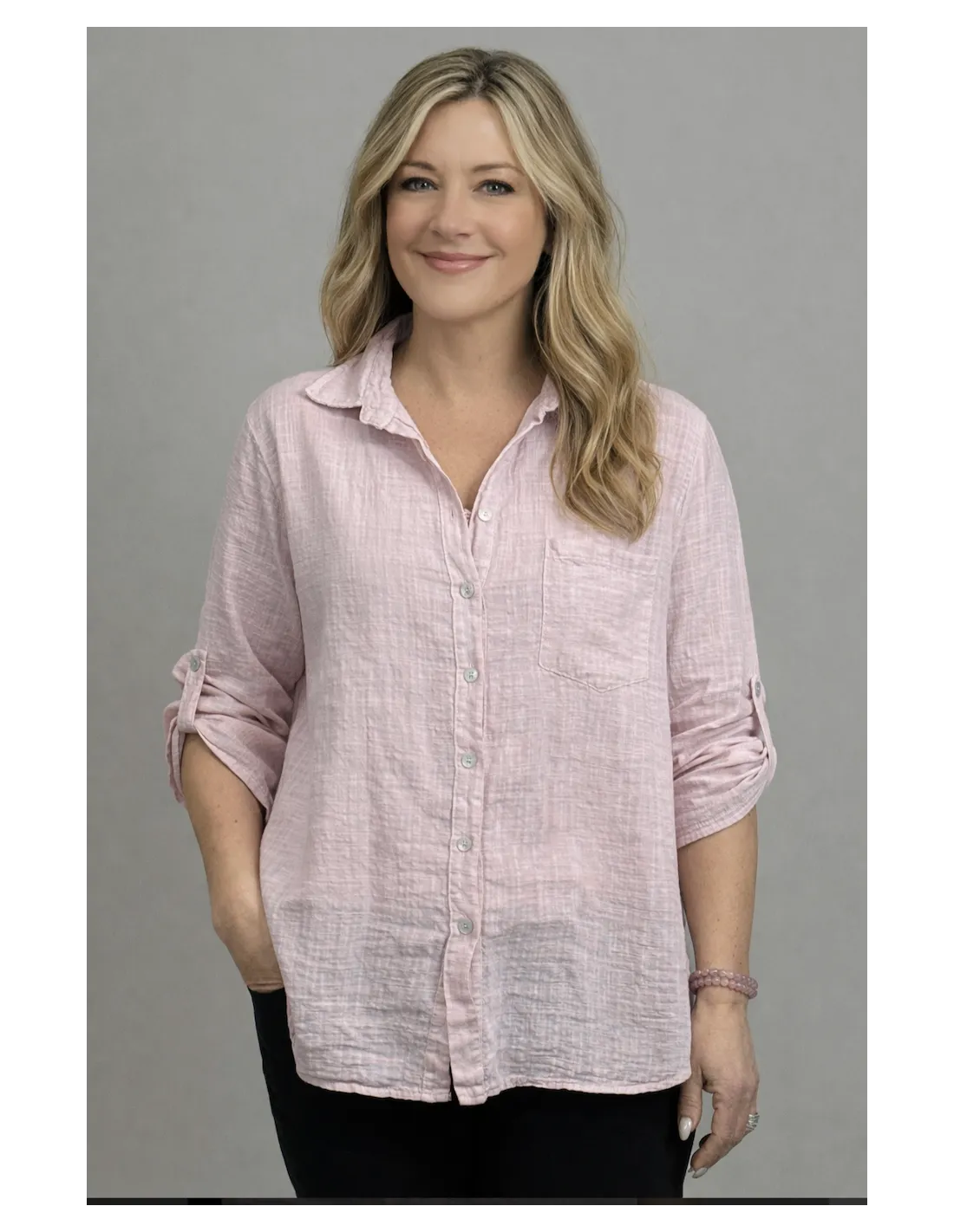 Blus med krage knappar hela vägen 1st bröstficka.
