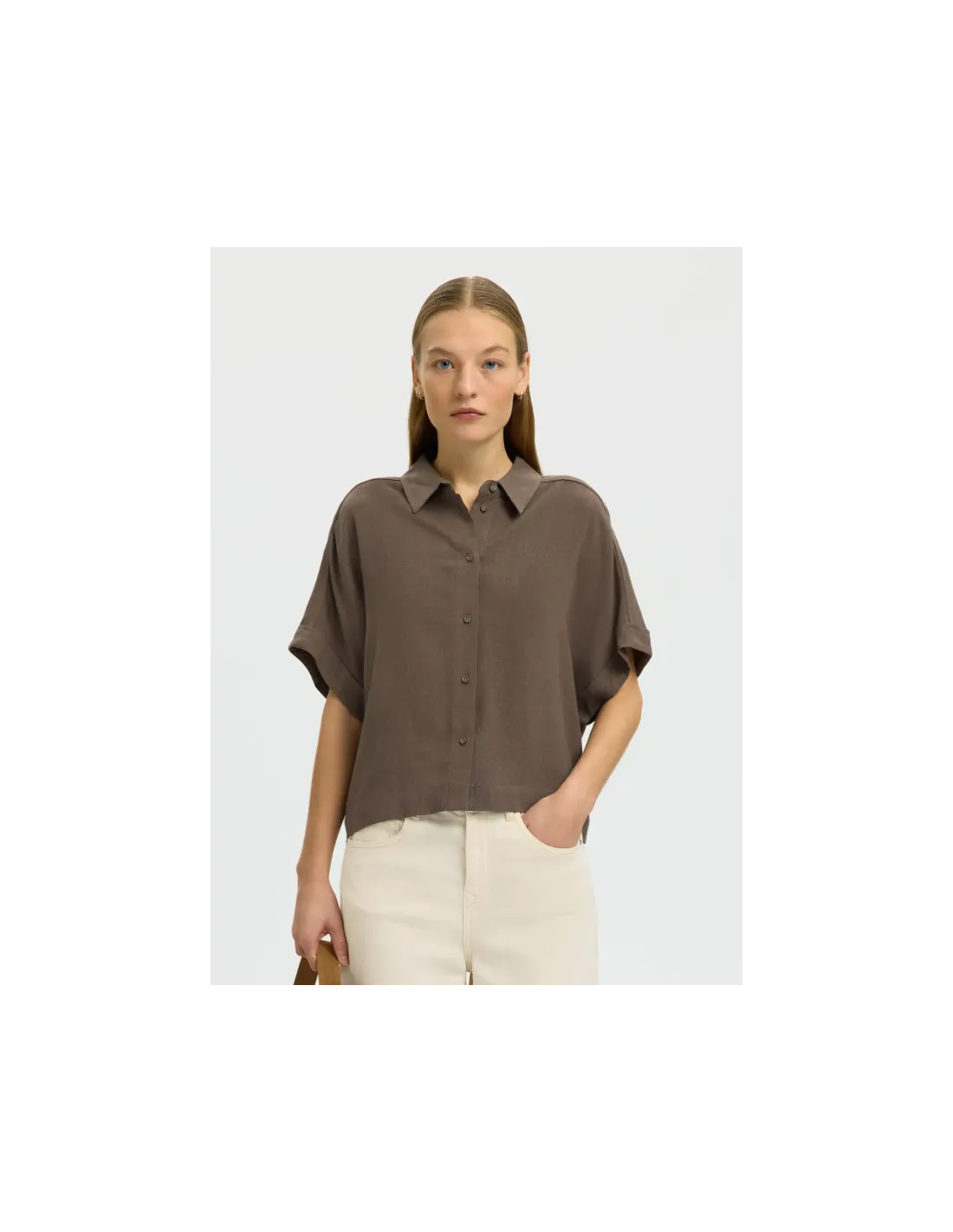 Kortärmad skjortlus med krage och knappar