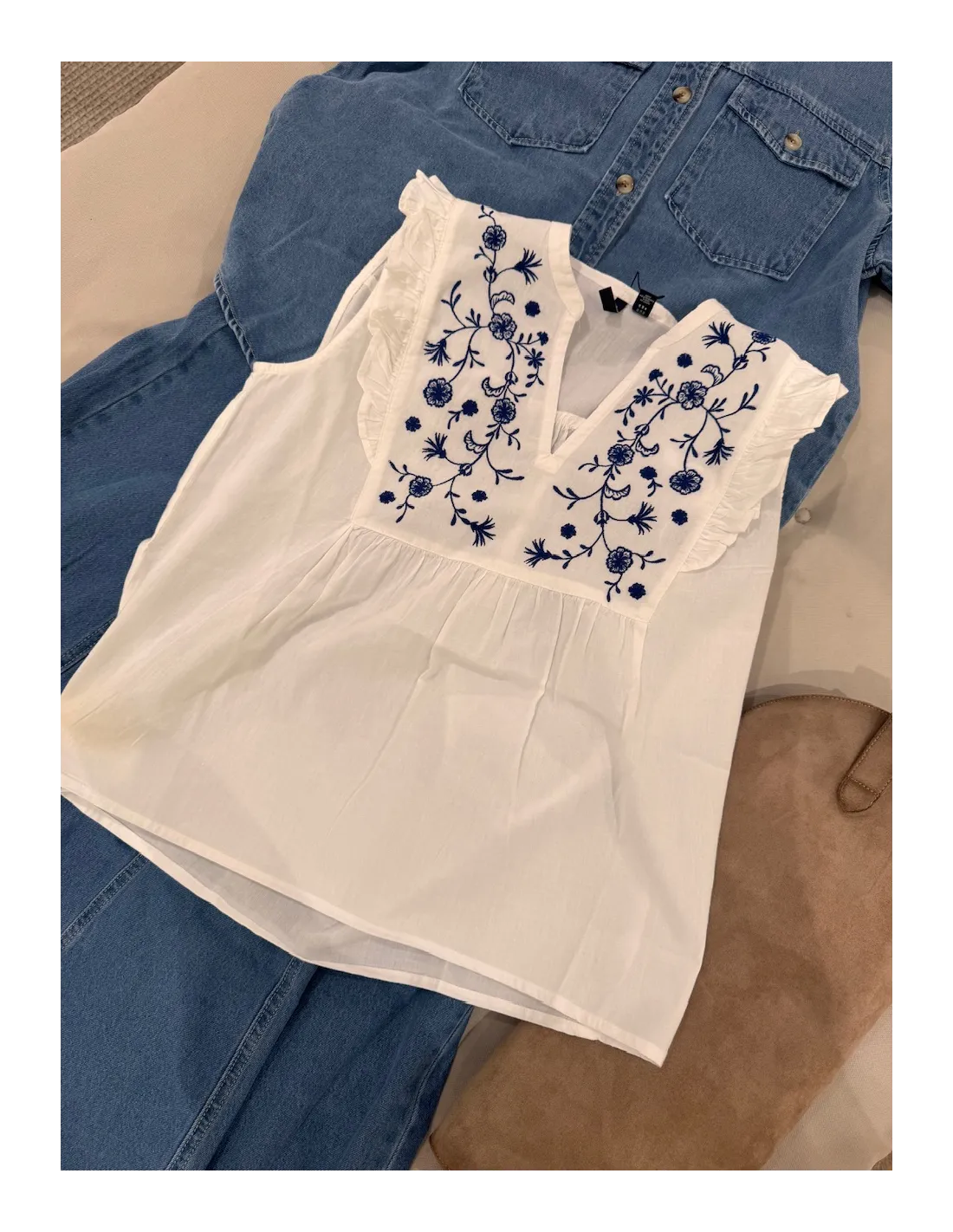 Otroligt söt blus med volanger och broderier.