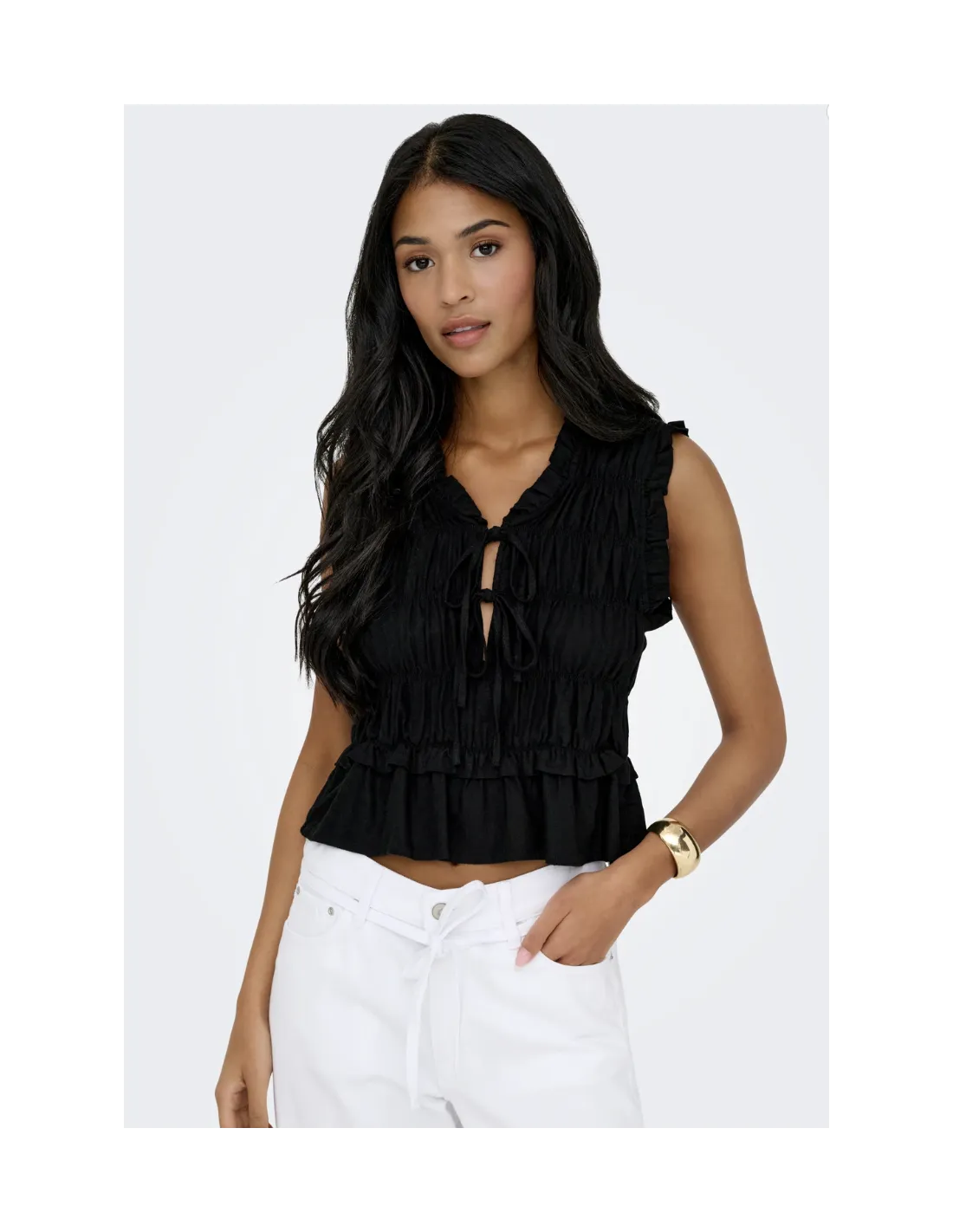 ONLGOA S/S LINEN BL FRILL TOP