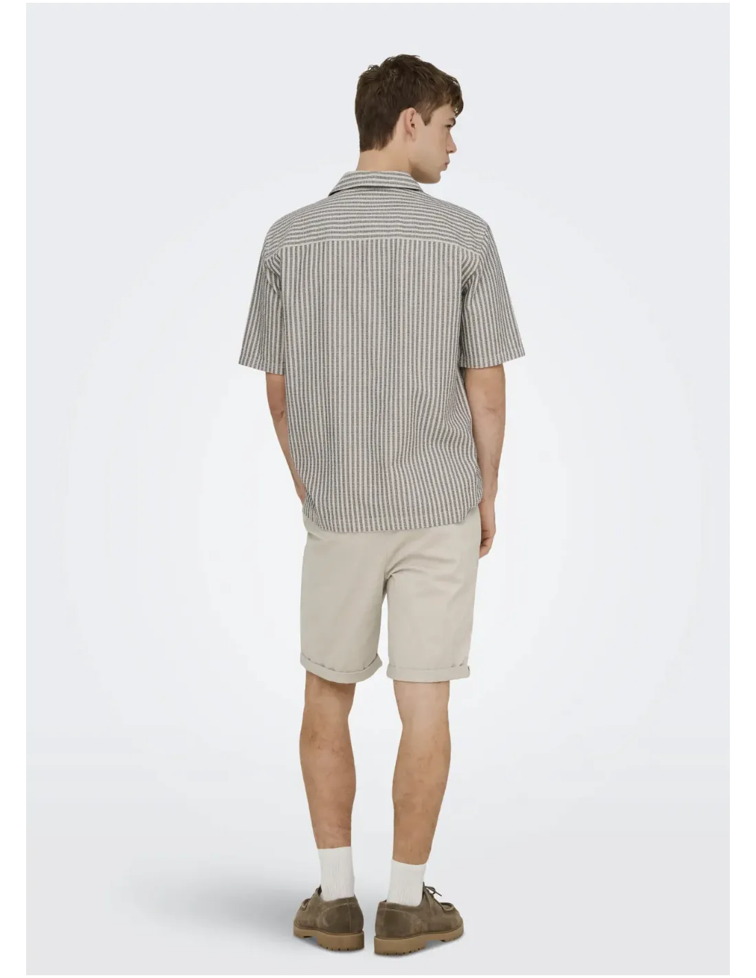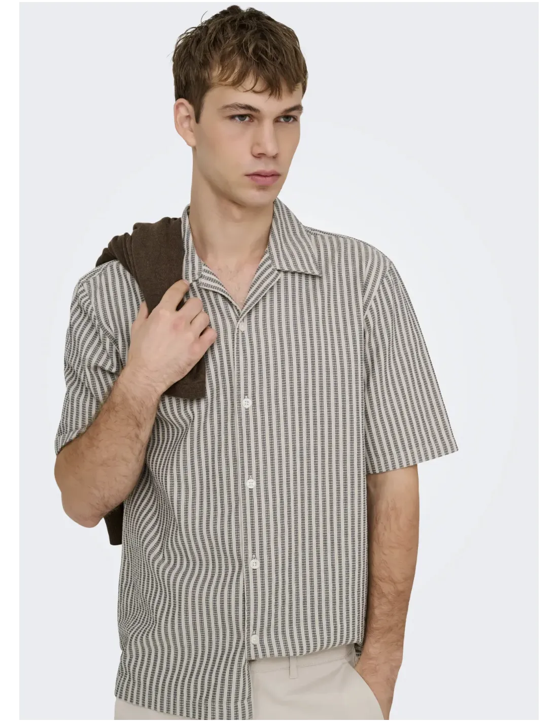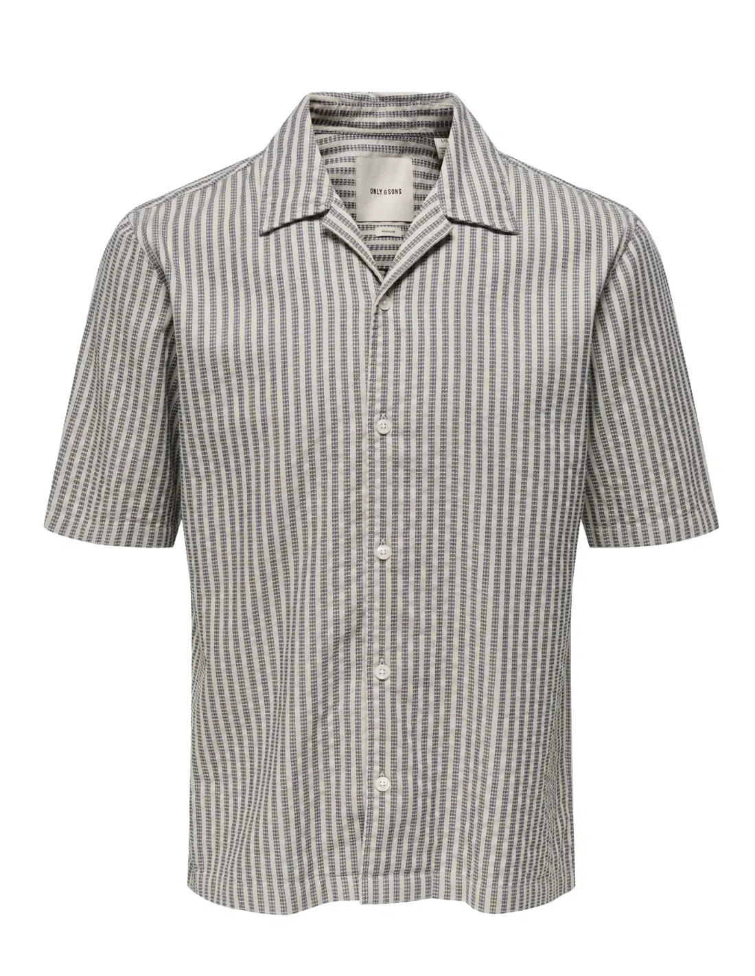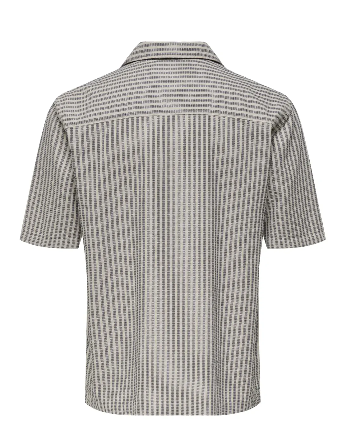 Randig kortärmad skjorta med krage och knappar. Struktur i kvaliteten.
