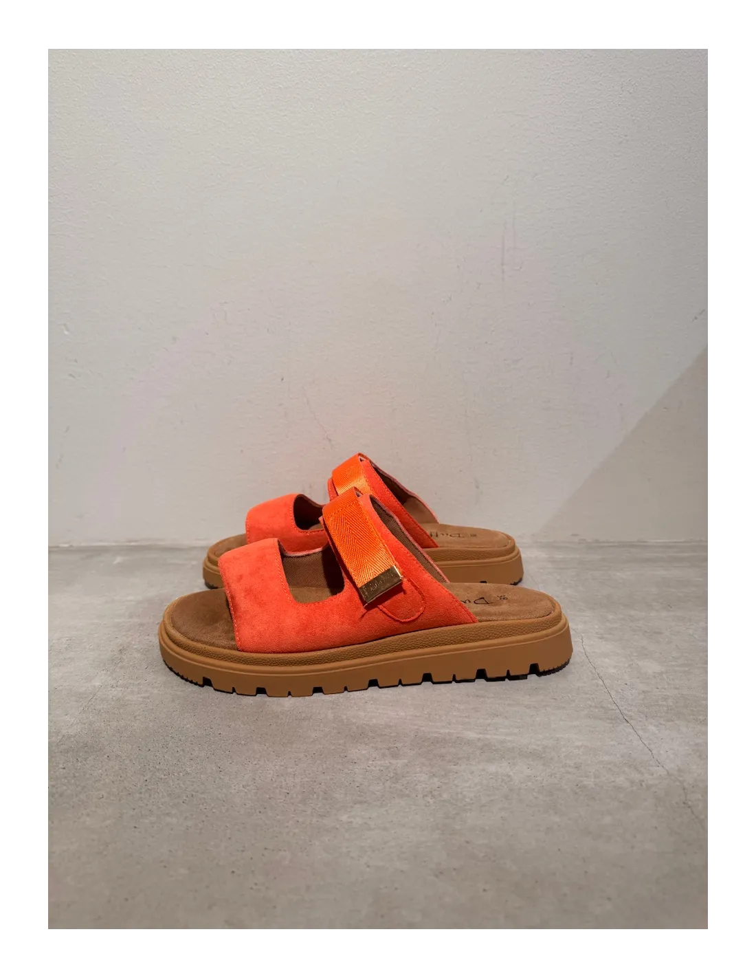 En skön och bekväm slip-in sandal med ovandel i mjuk mockaimitation. Skon pryds av ett dekorativt spänne på ovandelen som ger en stilren och trendig look. Perfekt för både vardag och lediga dagar.