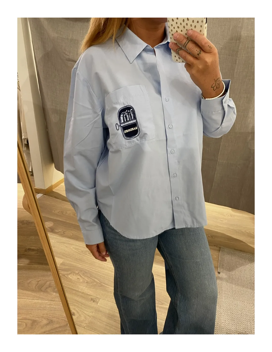 Skjorta som kom i vit och beige.